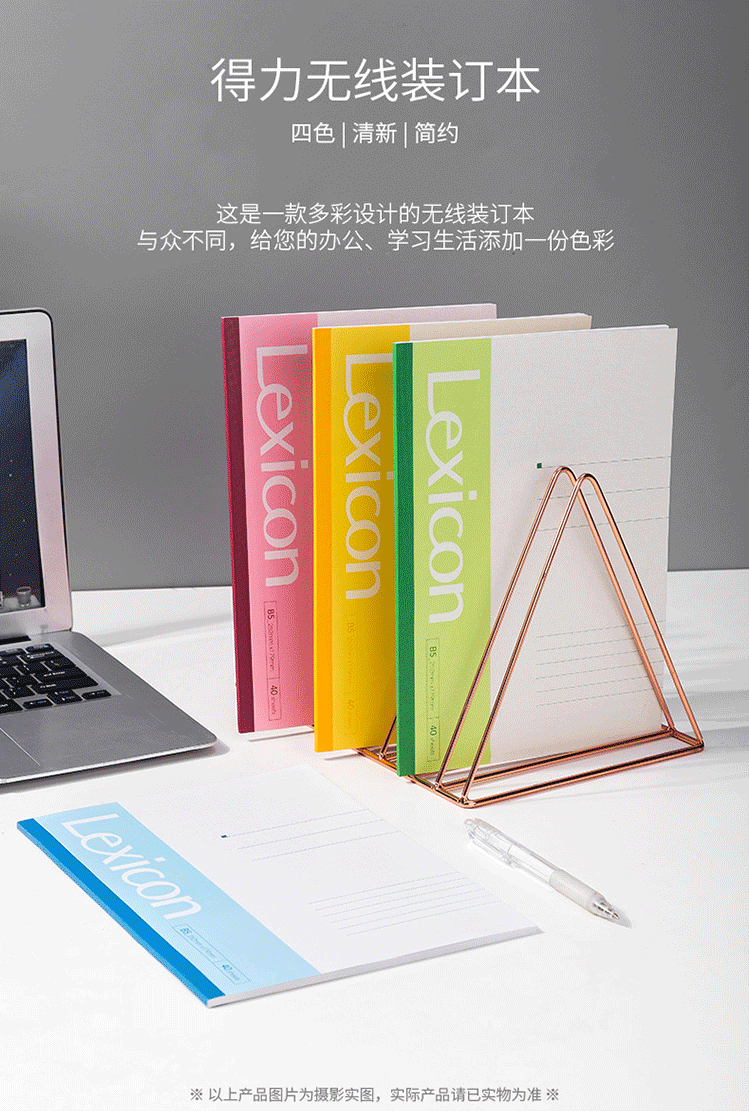 商品名称:得力7662办公无线装订本(混) B5-40张 12本/包