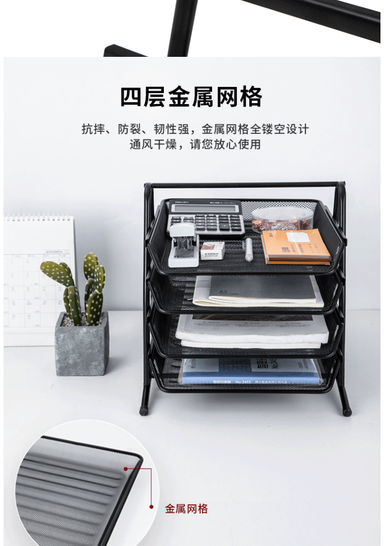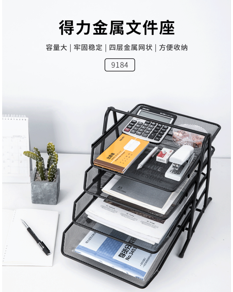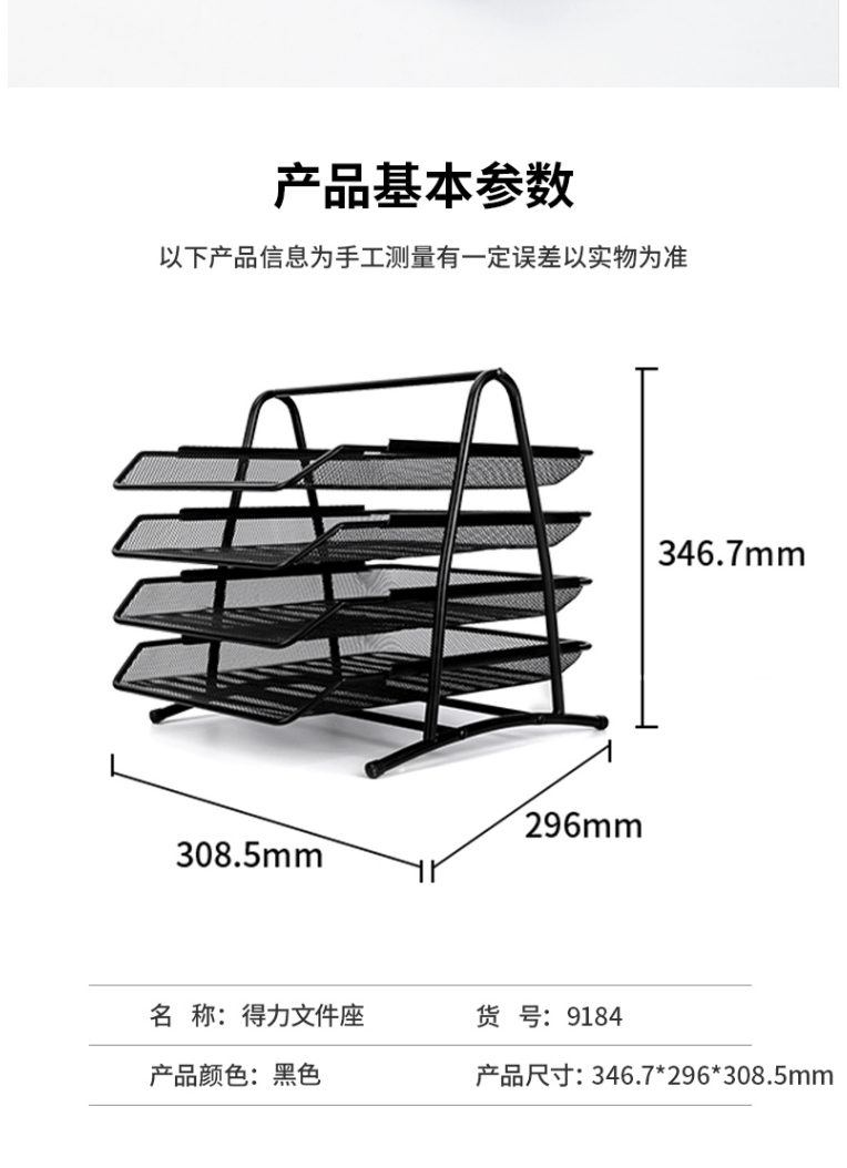 商品名称:得力(deli)四层金属文件栏文件盘 大容量文件架文件座文件盘9184