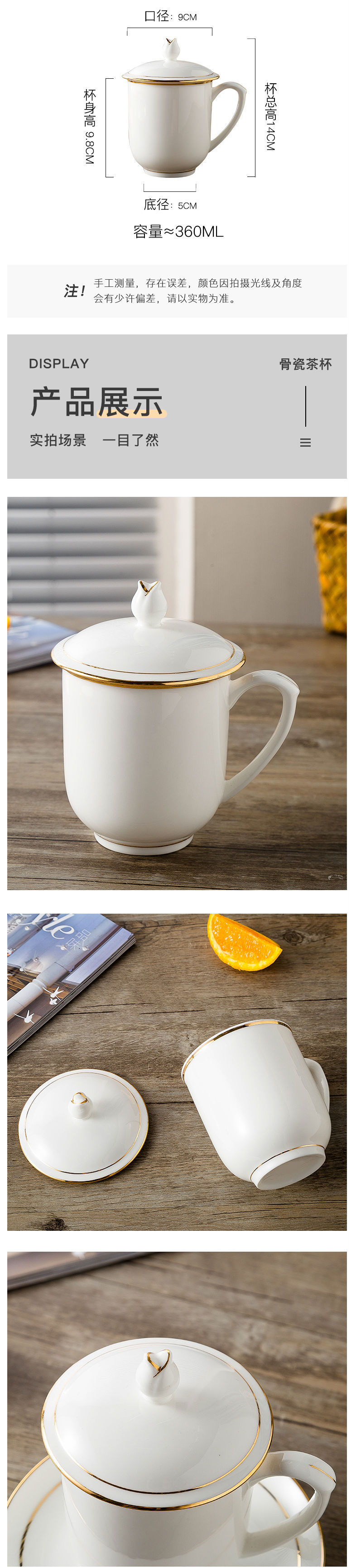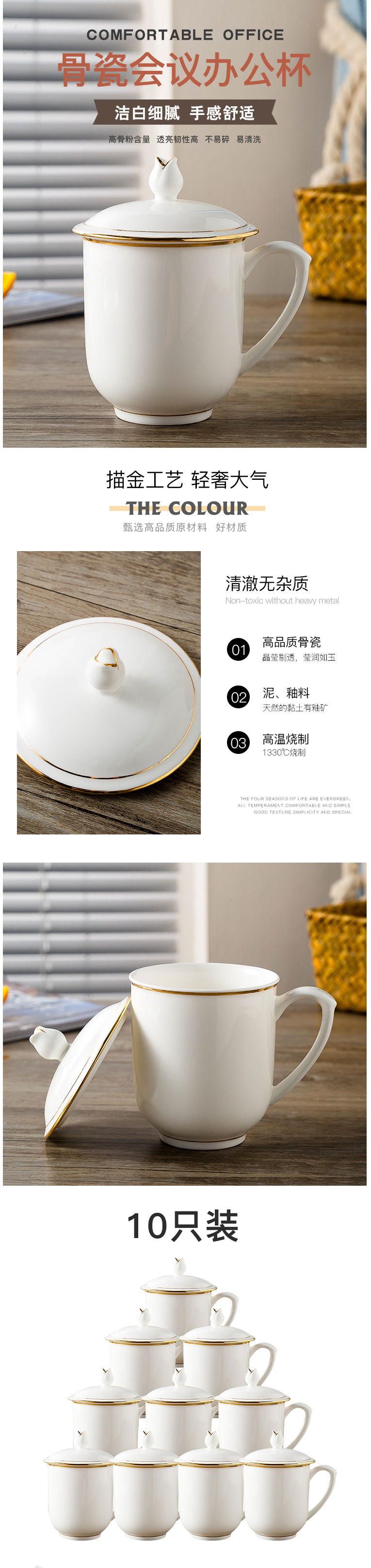 商品名称:陶相惠 金边贵族杯 陶瓷茶杯 办公杯会议杯 陶瓷盖杯 骨瓷开会茶杯 10只