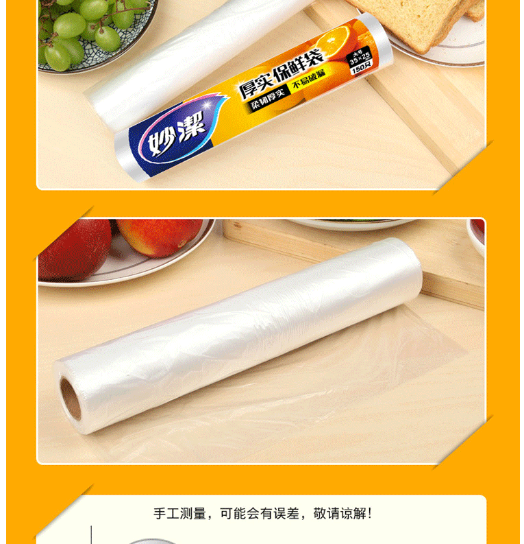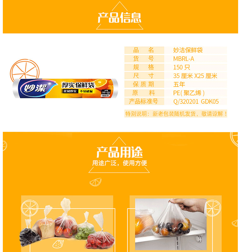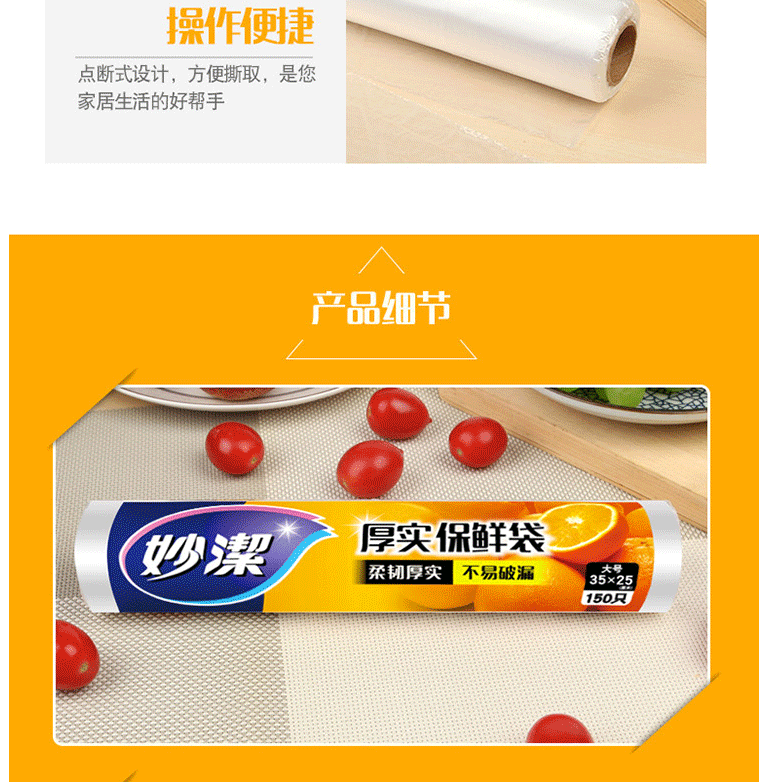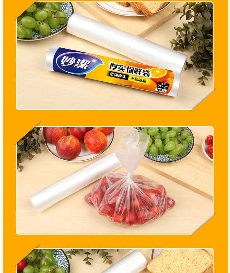 商品名称:妙洁 25*35cm保鲜袋 150只 大号加厚塑料保鲜袋