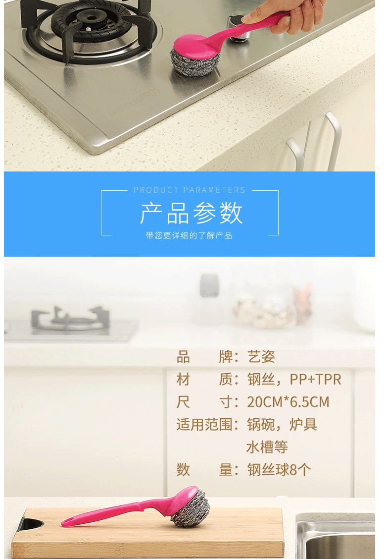 商品名称:艺姿 钢丝球刷 厨房用不锈钢锅刷 去油污不沾油 YZ-CF101