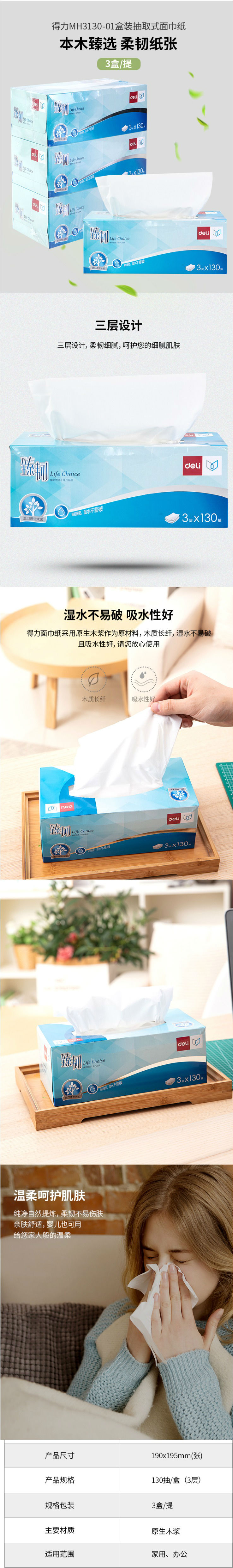 商品名称:得力(deli)盒纸抽 MH3130-01 盒装抽式面巾纸(3包/提)