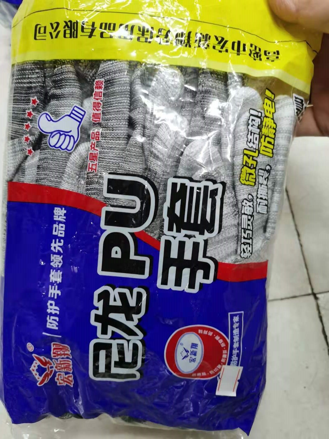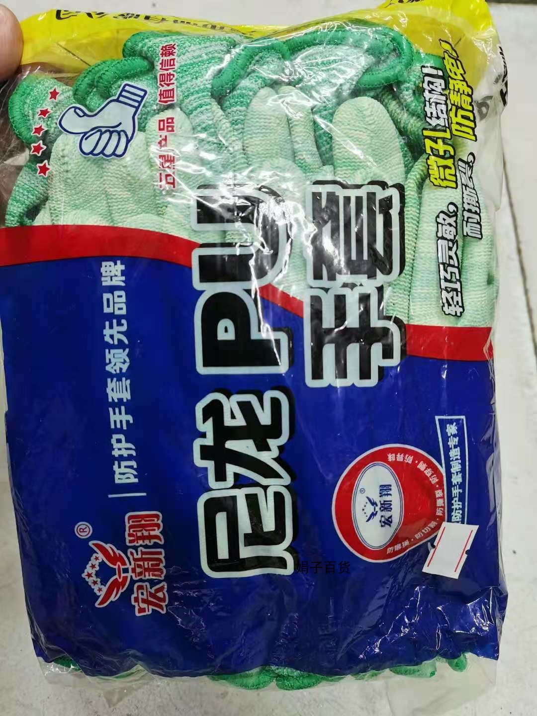 商品名称:宏新翔尼龙加胶无硅PU浸塑胶涂指 防静电劳保工作手套 12副/包