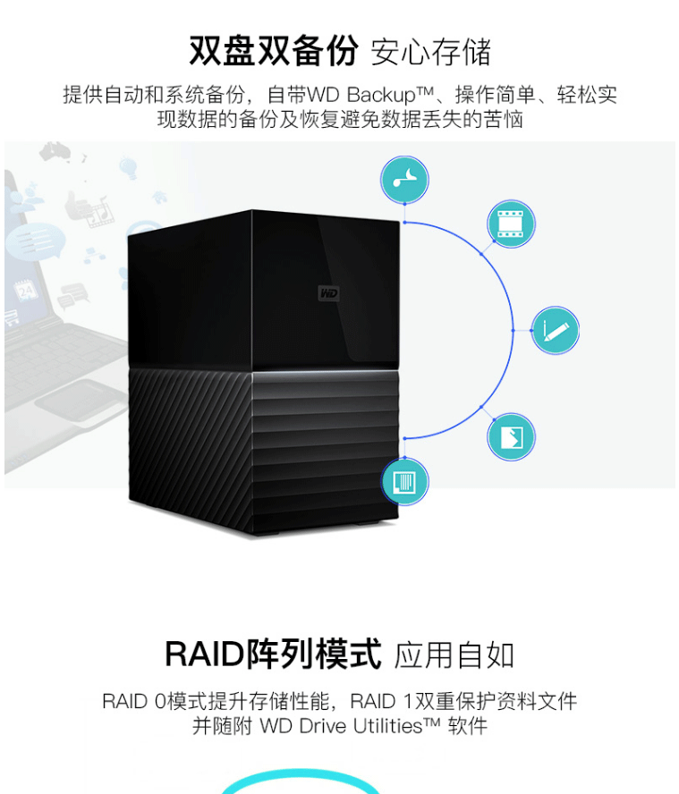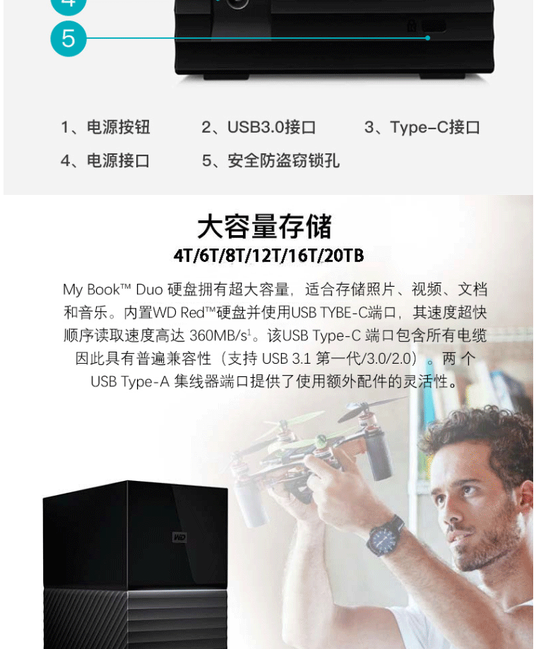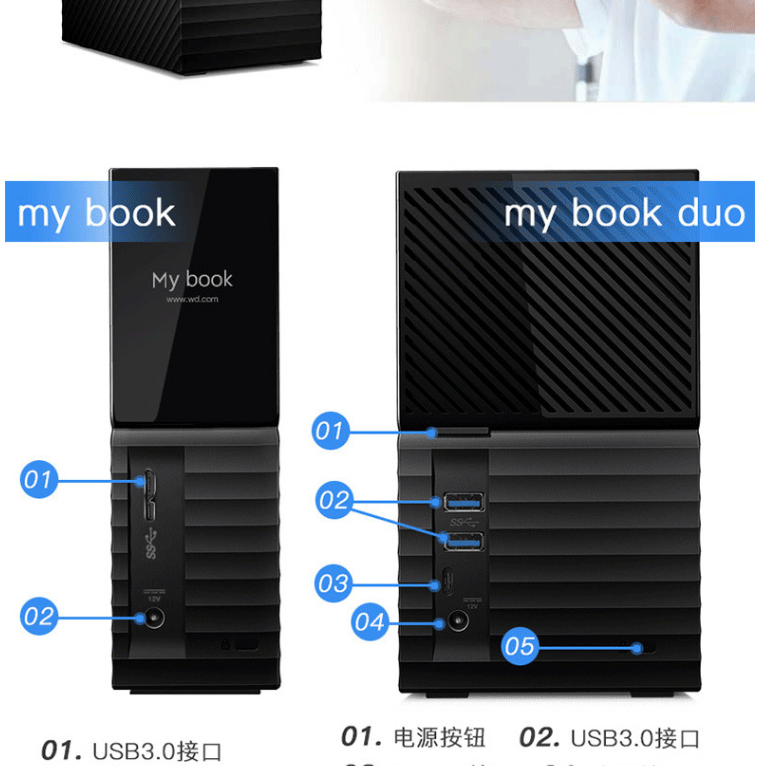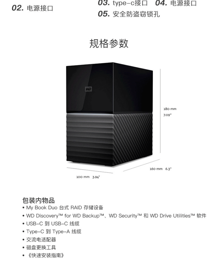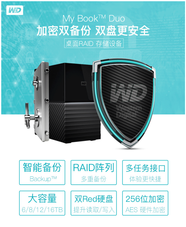 商品名称:西部数据(WD)移动硬盘阵列桌面硬盘my book duo 标配 28TB (WDBFBE0280JBK)