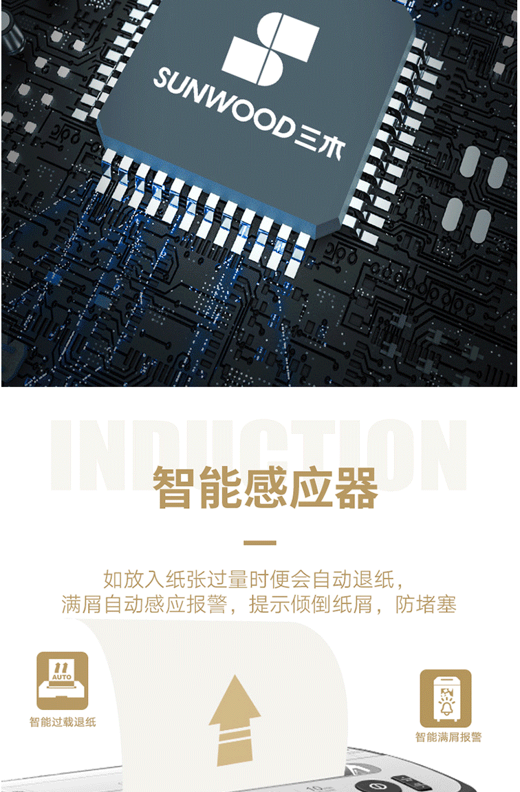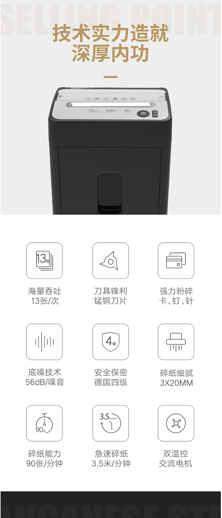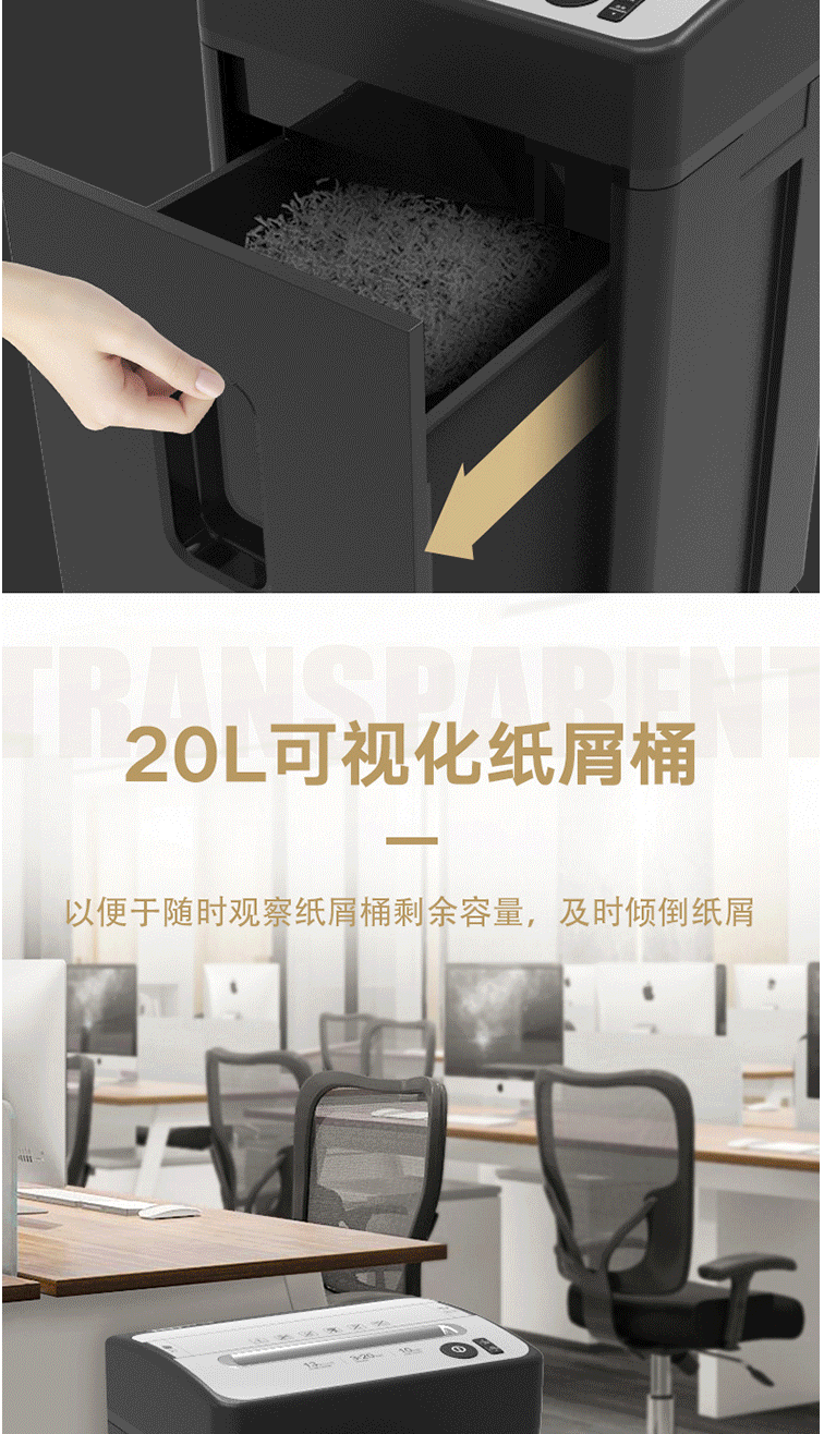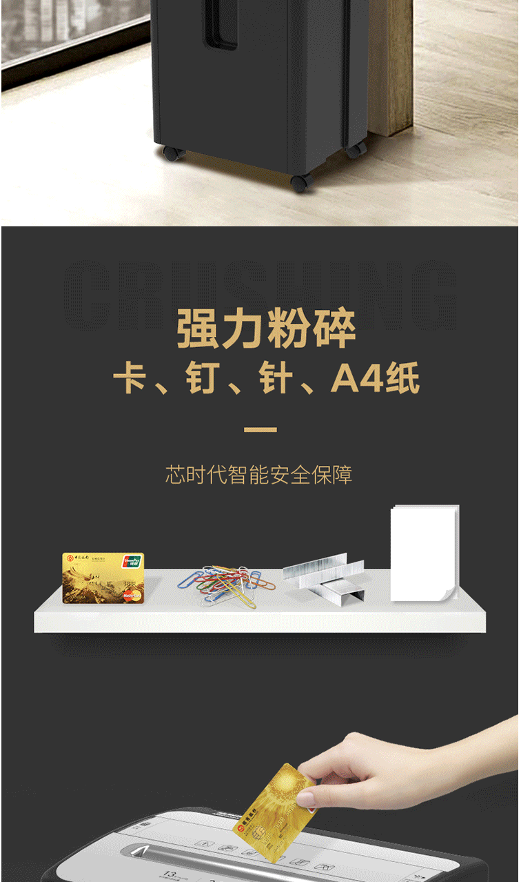 商品名称:三木(SUNWOOD)4级保密办公商用碎纸机MSD9323 (单次13张 持续10分钟 20L 可碎纸,卡,回形针、订书针)