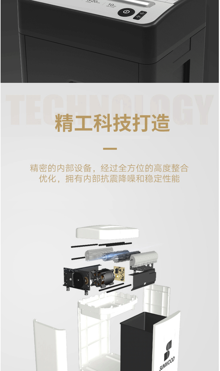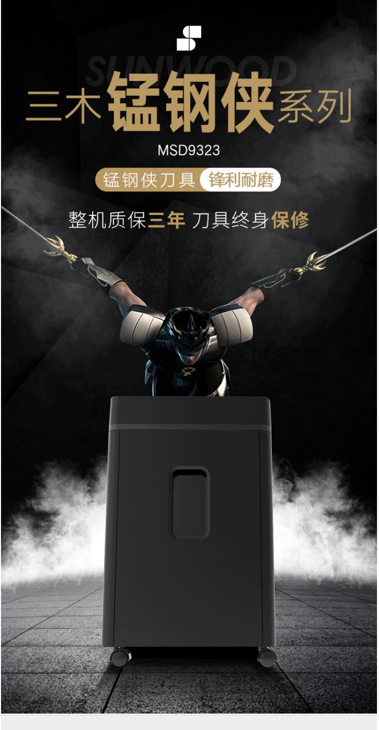 三木(SUNWOOD)4级保密办公商用碎纸机MSD9323 (单次13张 持续10分钟 20L 可碎纸,卡,回形针、订书针)