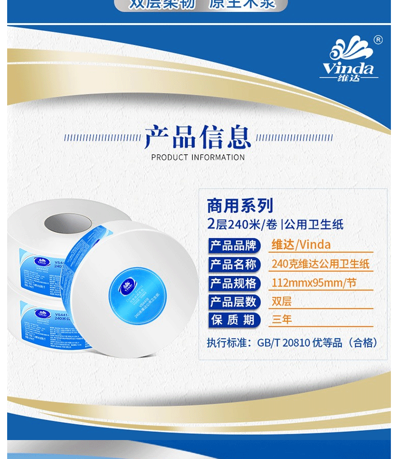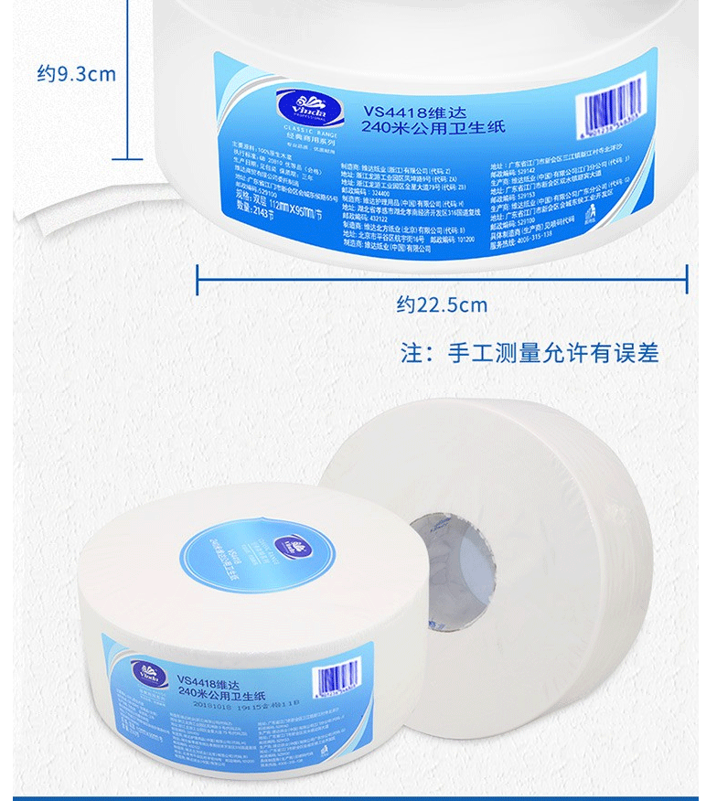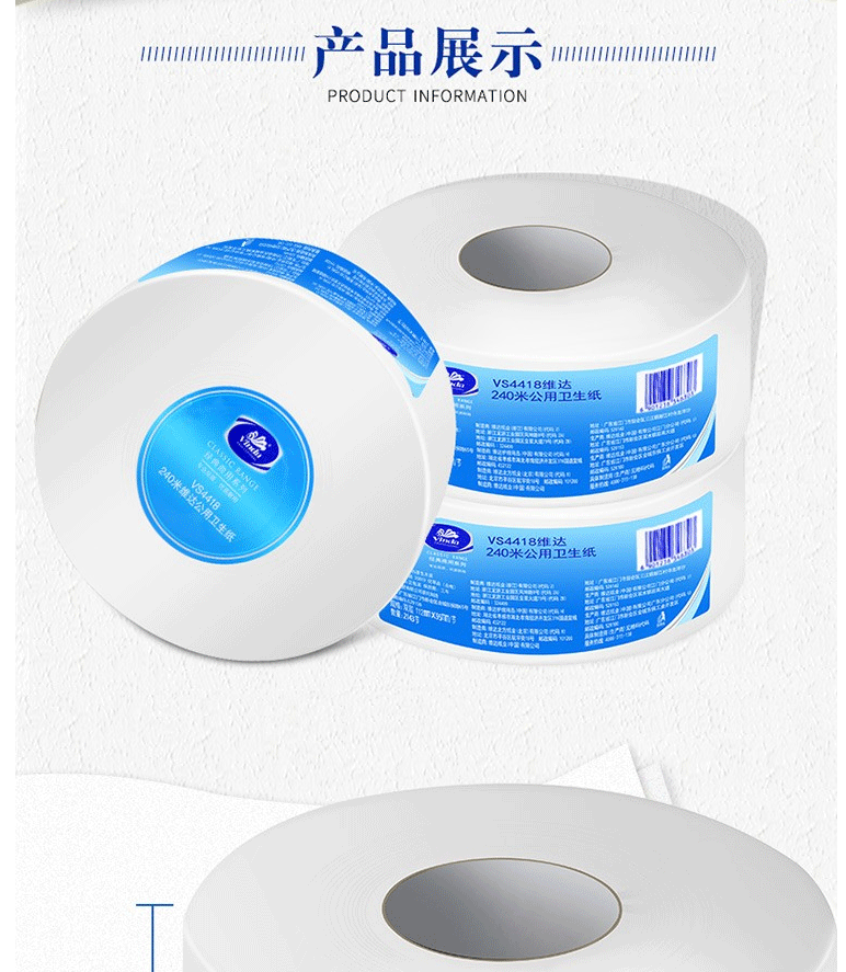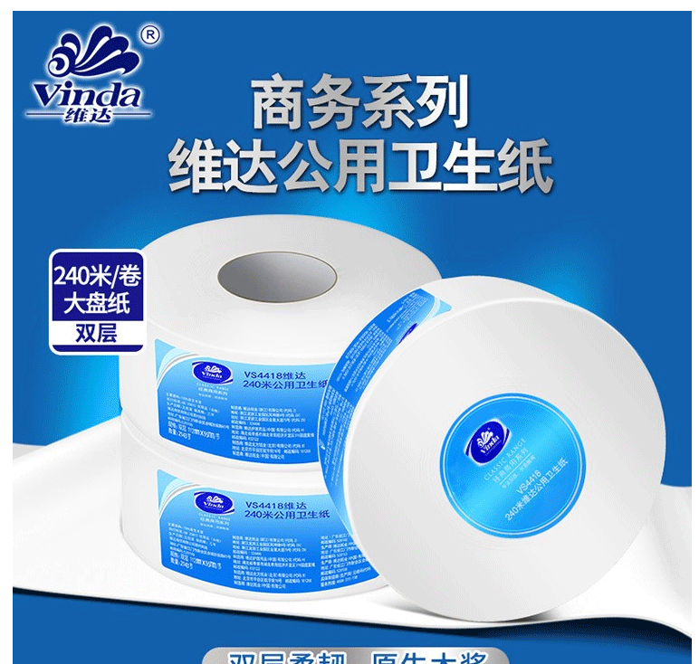 商品名称:维达(Vinda)VS4418 大盘纸 双层240米商用公用卫生纸(12卷/箱)
