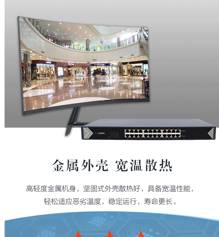 商品名称:海康威视HIKVISION交换机24网口千兆自适应非网管非POE供电交换器网线分流分线器 3E0524-E
