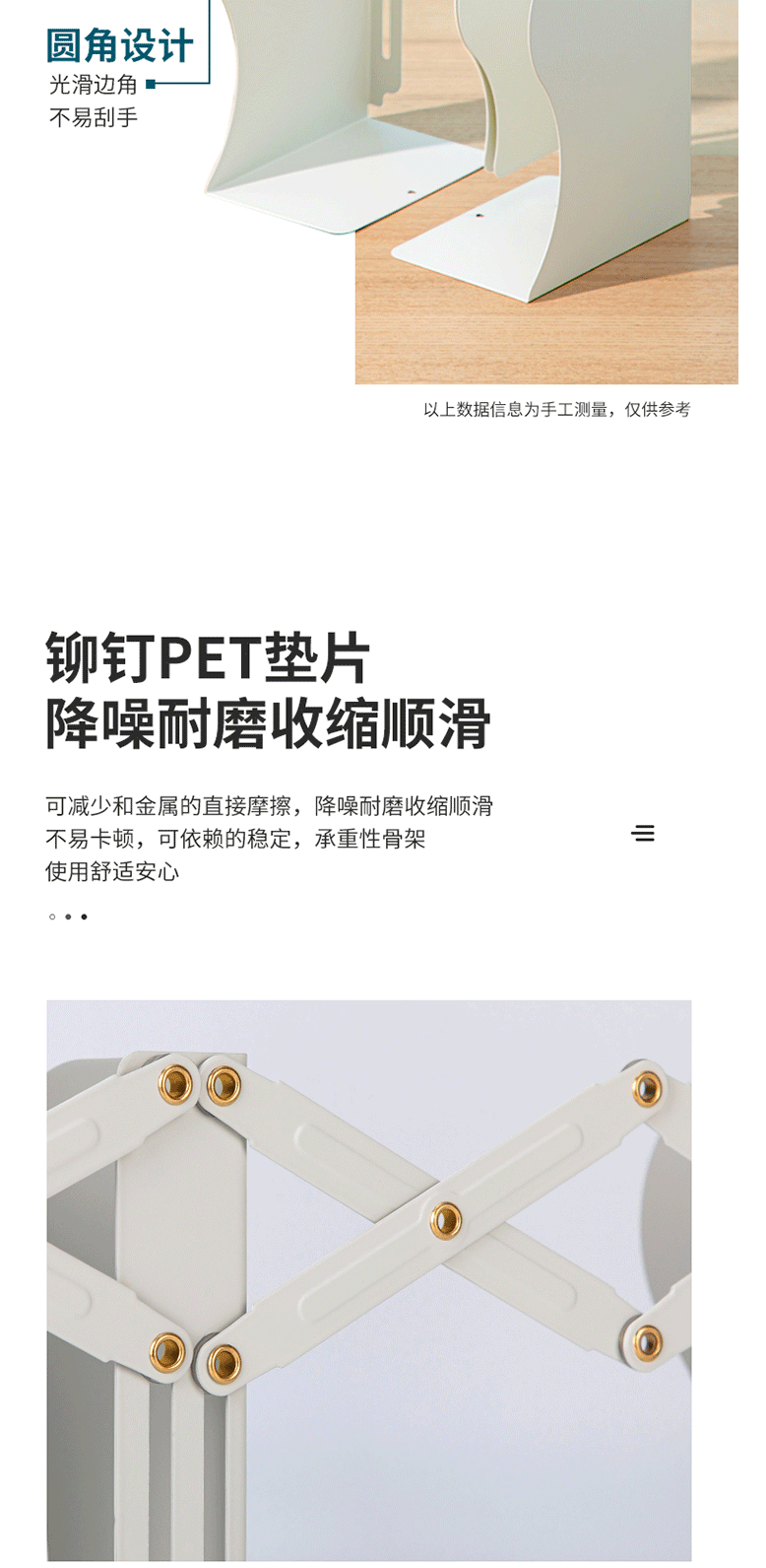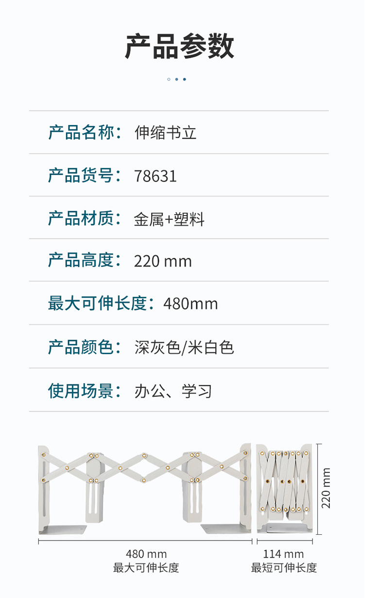 商品名称:得力(deli)22cm可伸缩书立 简易收纳单联可控 米白 78631