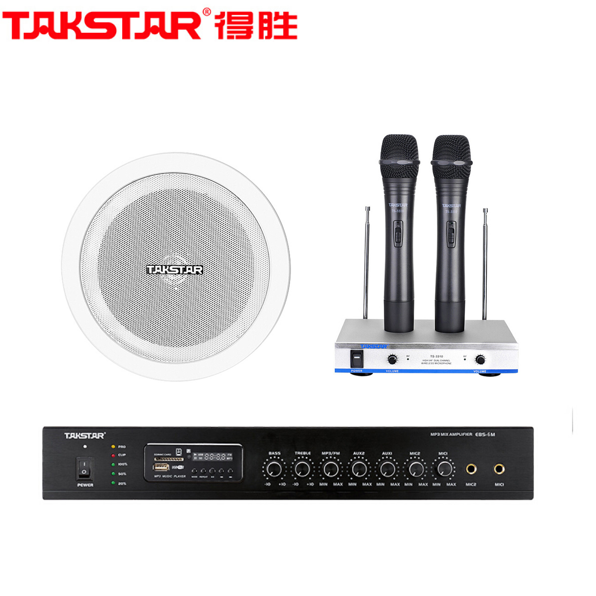 音箱功放安装定制 音箱4个+功放1台+无线麦克风 含送货及安装