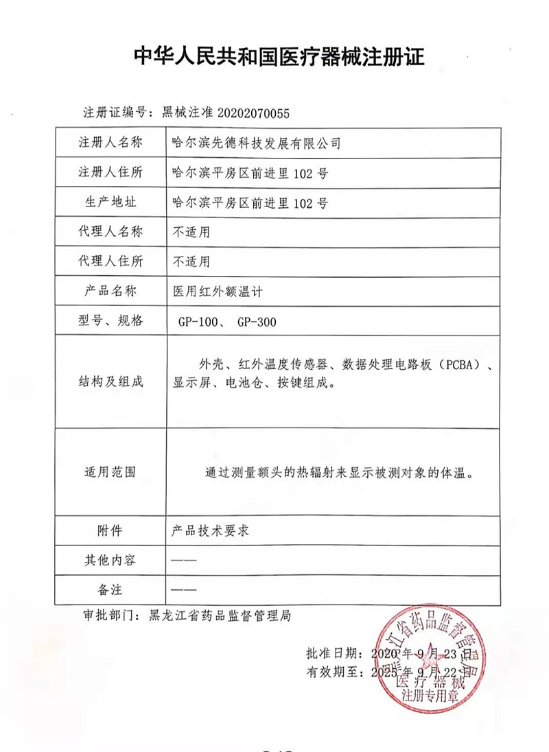 商品名称:先德医用红外额温计GP-100 带支架测温仪