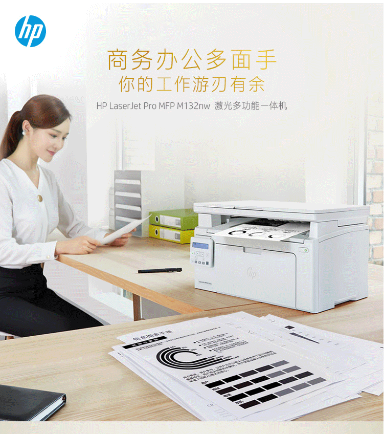 商品名称:惠普(HP)M132nw黑白激光三合一无线多功能打印机一体机(打印、复印、扫描)