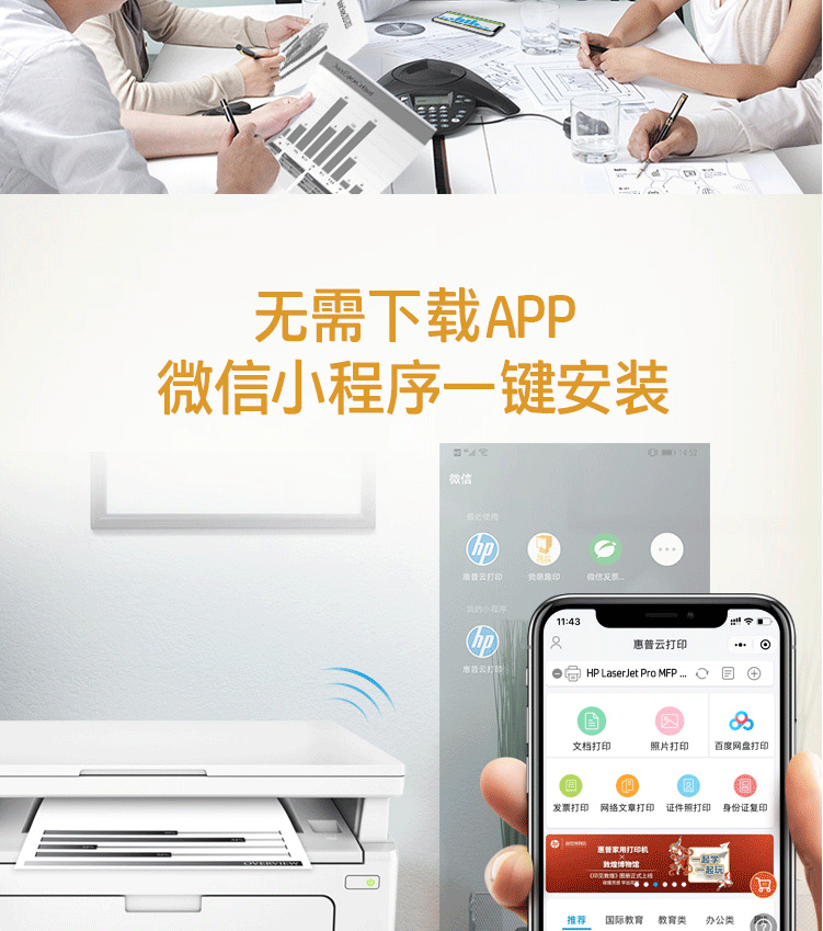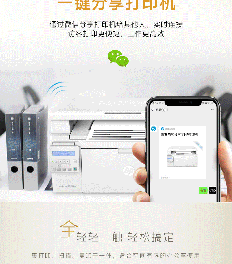 惠普(HP)M132nw黑白激光三合一无线多功能打印机一体机(打印、复印、扫描)