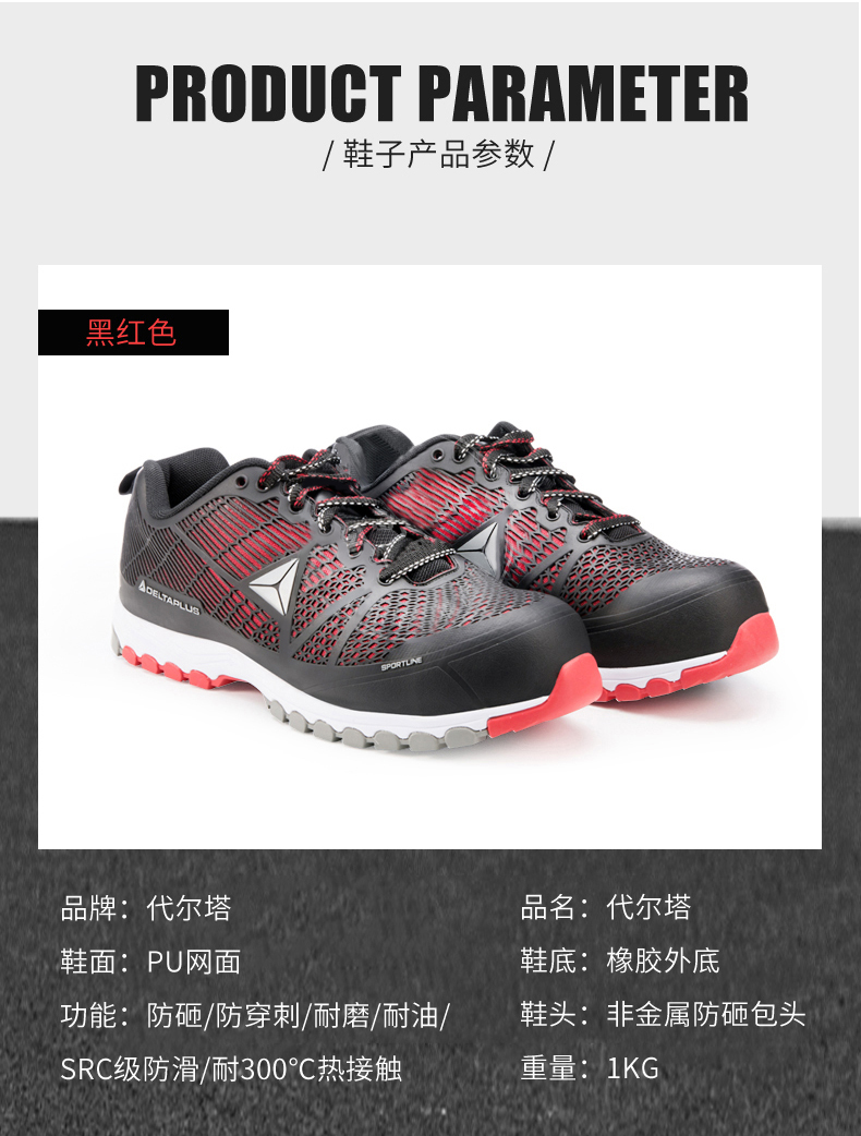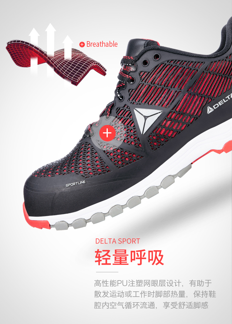 商品名称:代尔塔301301 透气超轻防臭安全鞋 防砸防刺防静电劳保鞋 (37-45码 鞋码请备注)