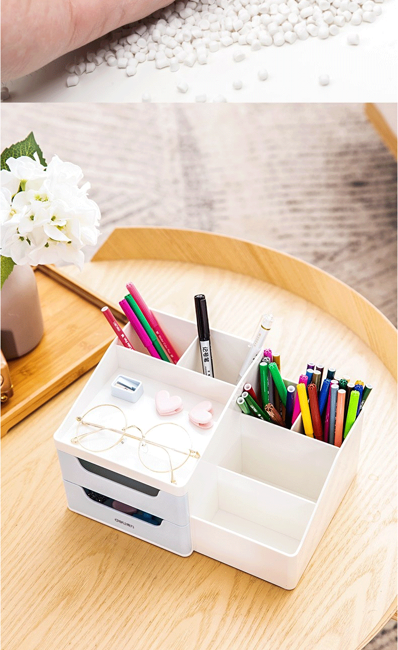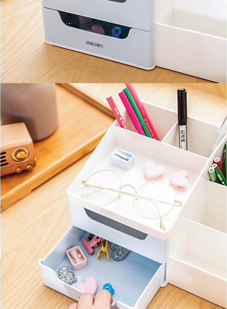 得力(deli)九格桌面收纳盒 笔筒 抽屉式储物盒 8900浅蓝