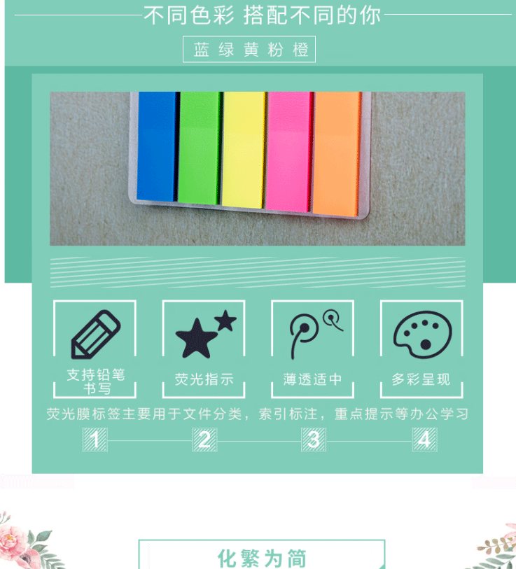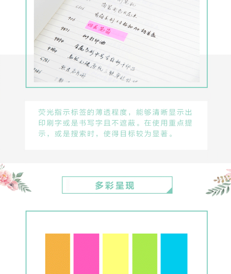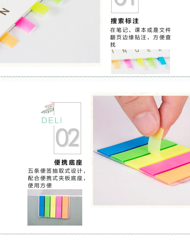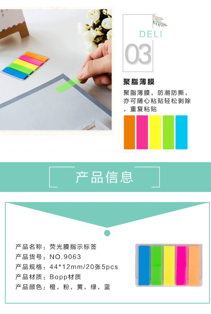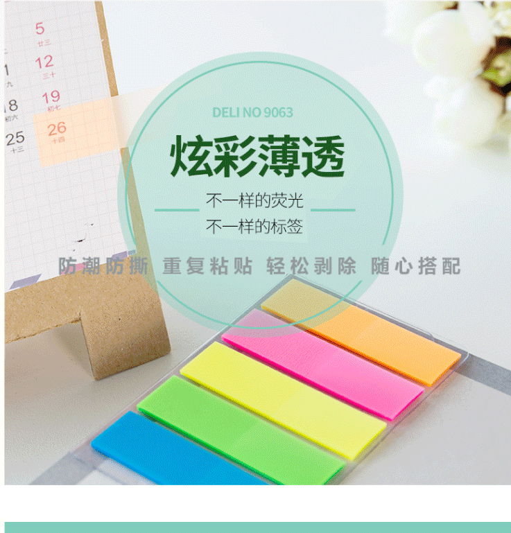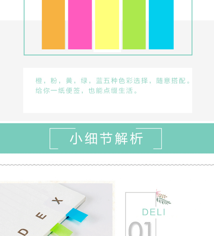 商品名称:得力(deli) 彩色指示标签 文件标注分类帖 记事贴便利贴 9063