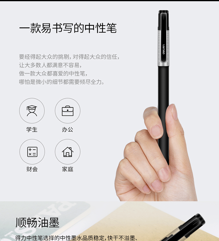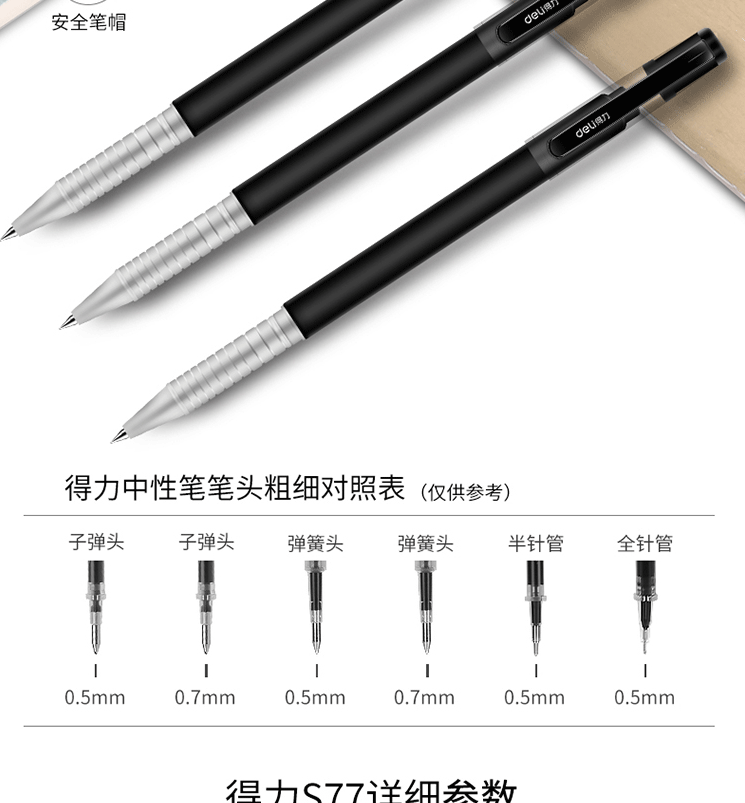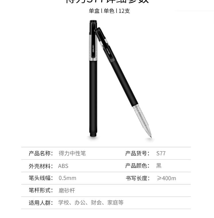商品名称:得力(deli)0.5mm黑色中性笔S77 12支/盒