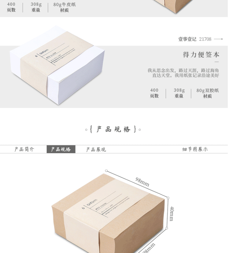 商品名称:得力(deli)400张98*98mm简约牛皮纸便筏本 便签纸 便签本子 21709