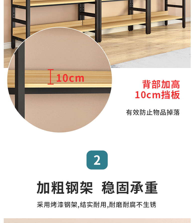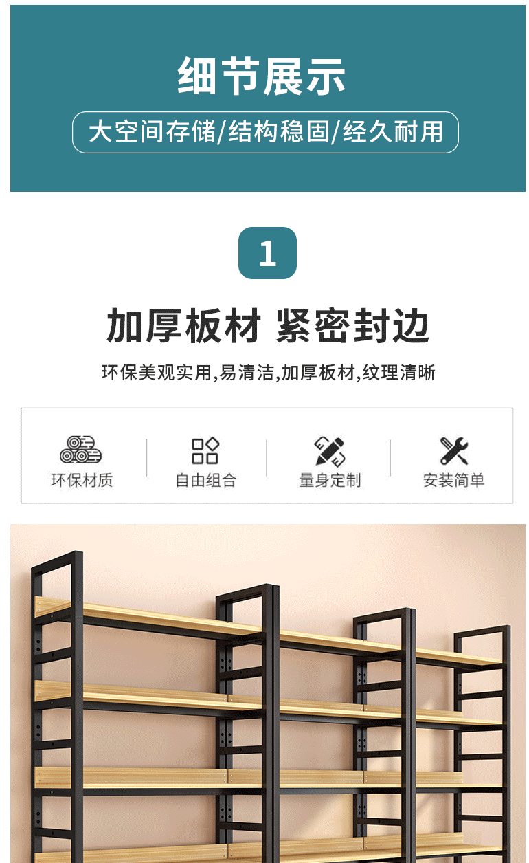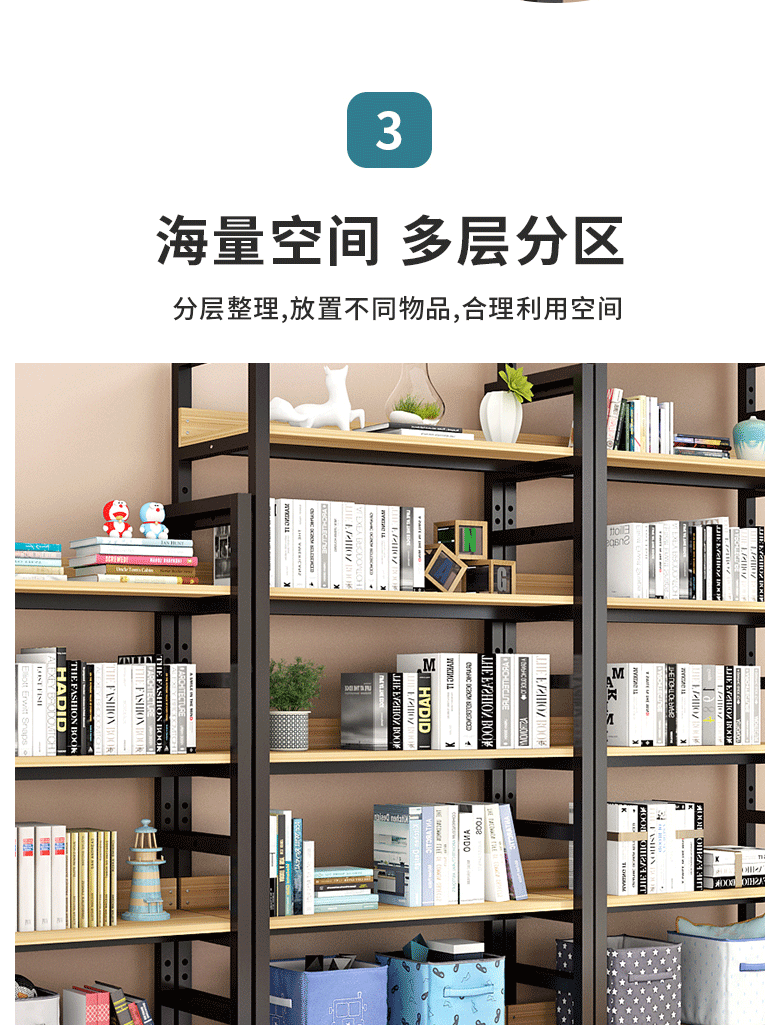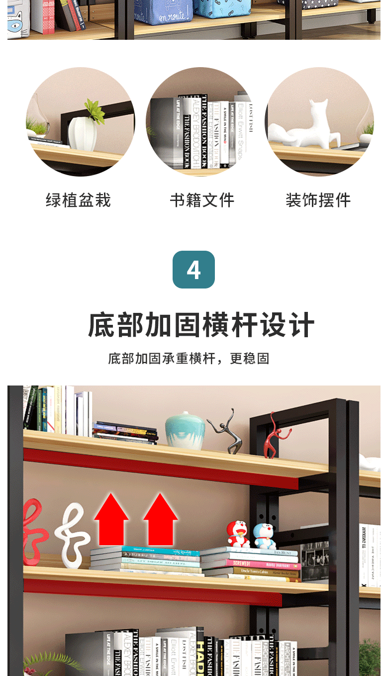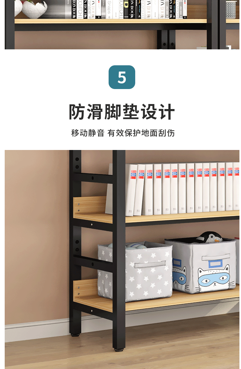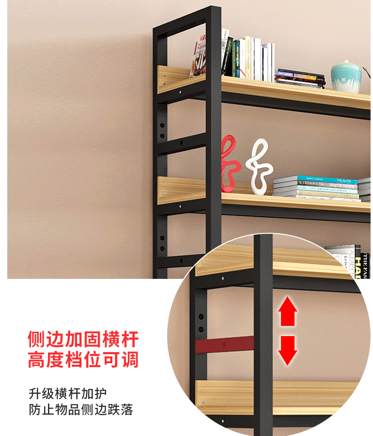 商品名称:萌熙迪 落地书架 多层可调节 铁艺置物架 白架+浅胡桃 可调节六层长80宽30高212