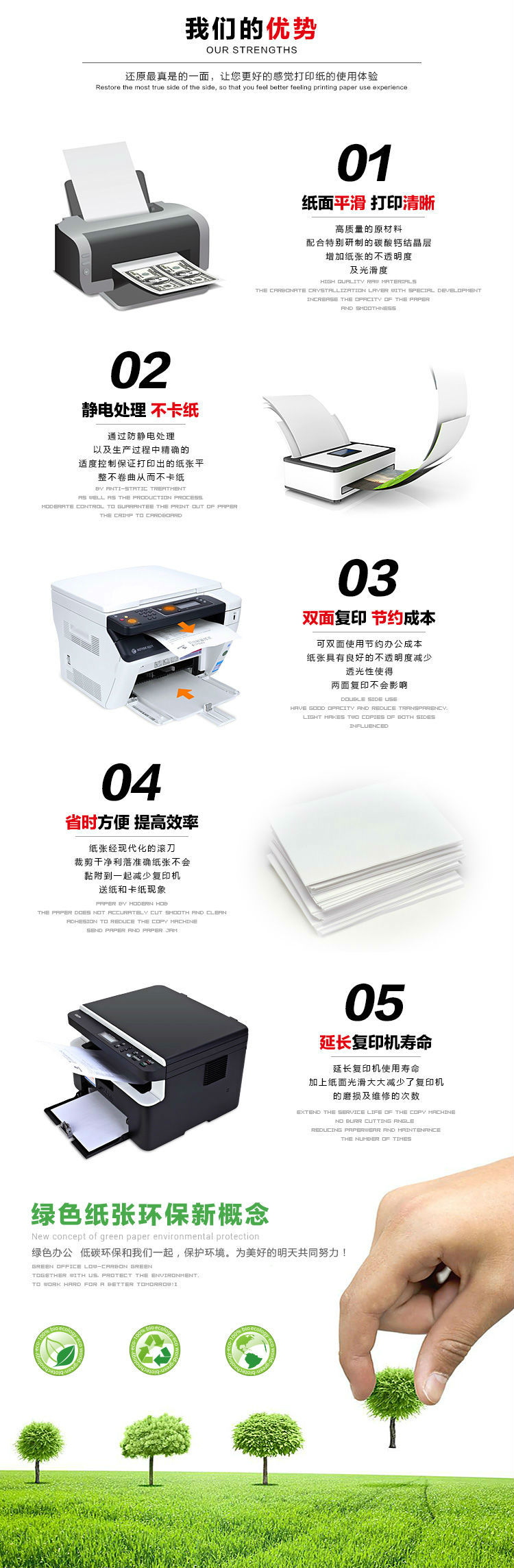 商品名称:绿钢炮 复印纸 A4-70g 8包/箱 230箱