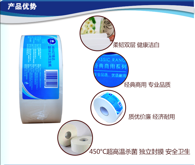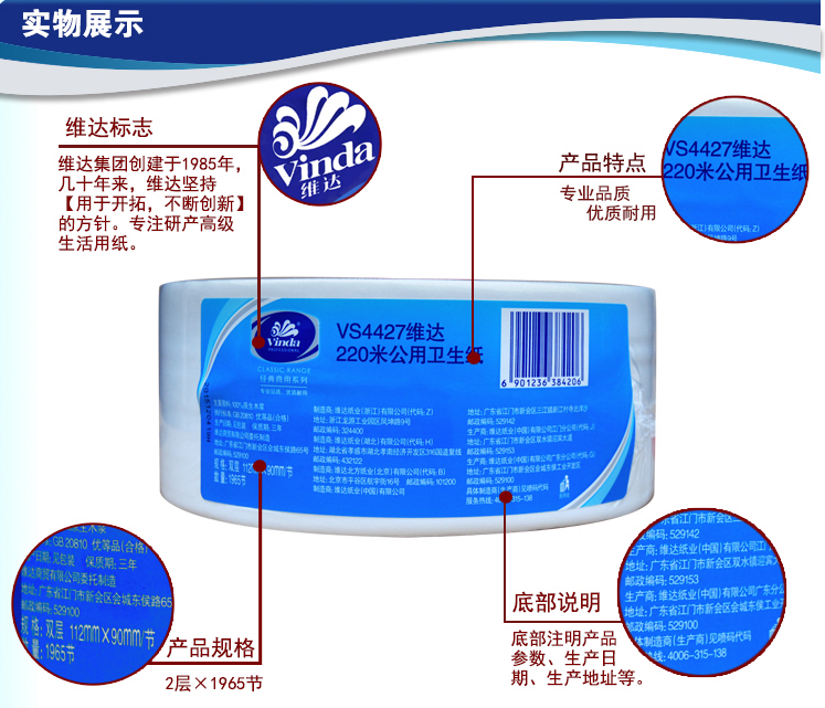 商品名称:维达商用大盘纸 220米*12卷/箱 VS4427