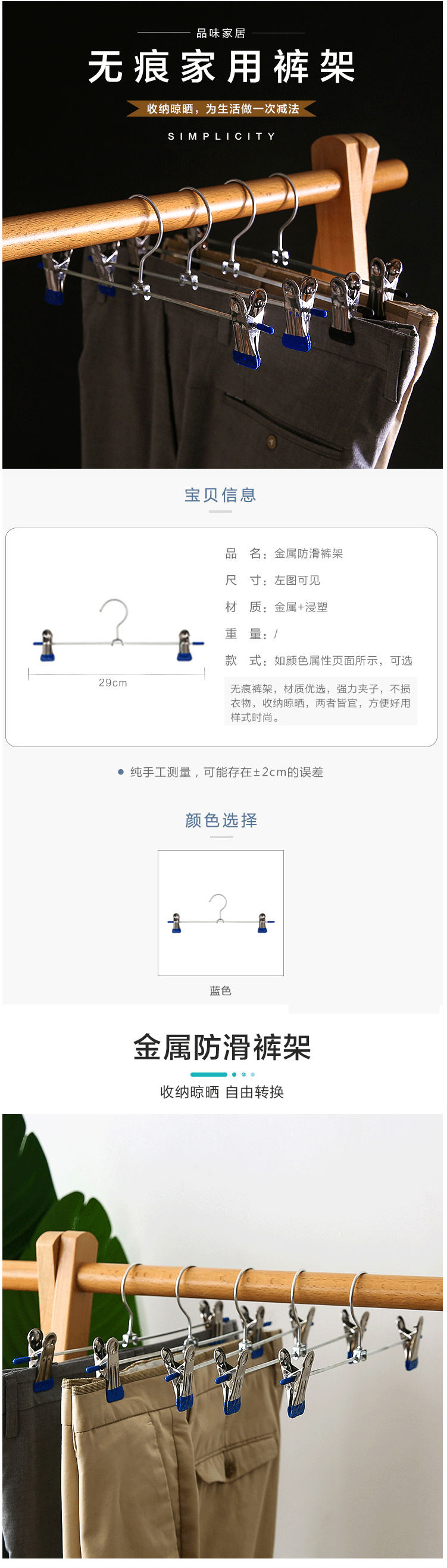 商品名称:裤夹 裤衣架夹子 无痕强力裤子晾衣架 挂裤夹子10支装
