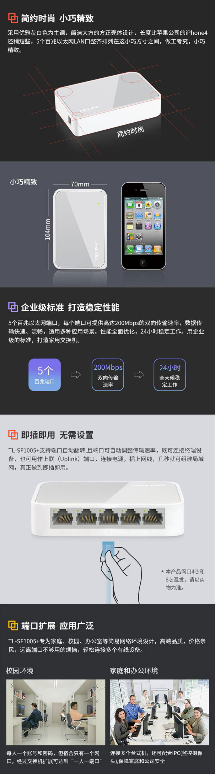 商品名称:TP-LINK TL-SF1005+ 5口百兆交换机 以太网络集线器分线器 分流器