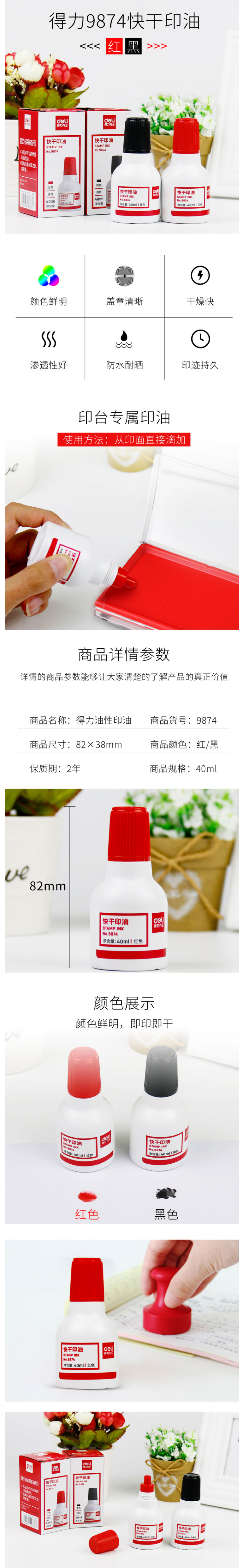 商品名称:得力(deli) 9874快干清洁印油40ml黑色 (单位:瓶)
