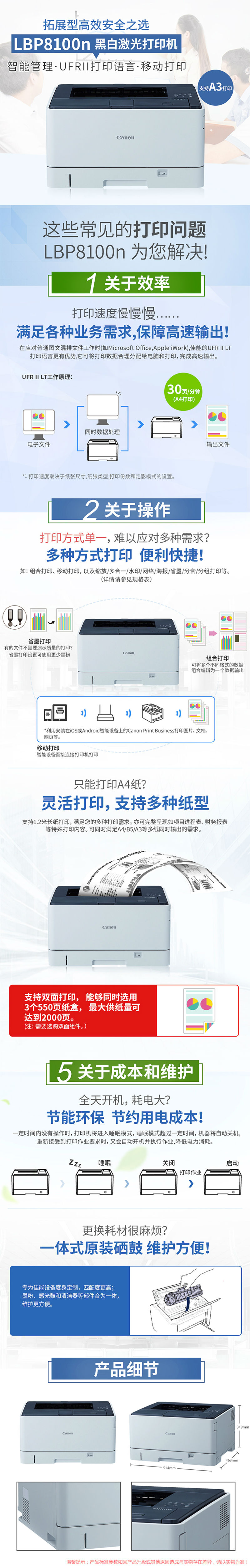 商品名称:佳能(CANON)LBP8100N黑白激光打印机 A3幅面 有线网络打印 一体式硒鼓
