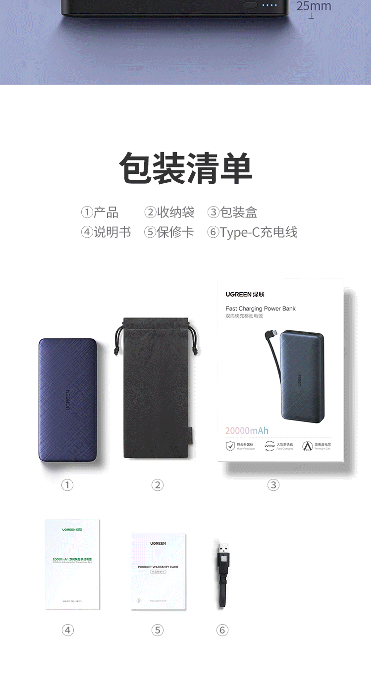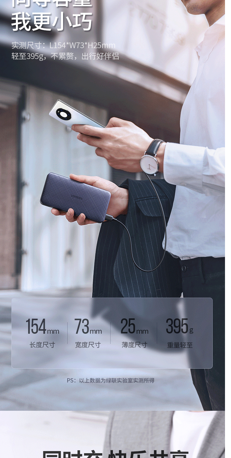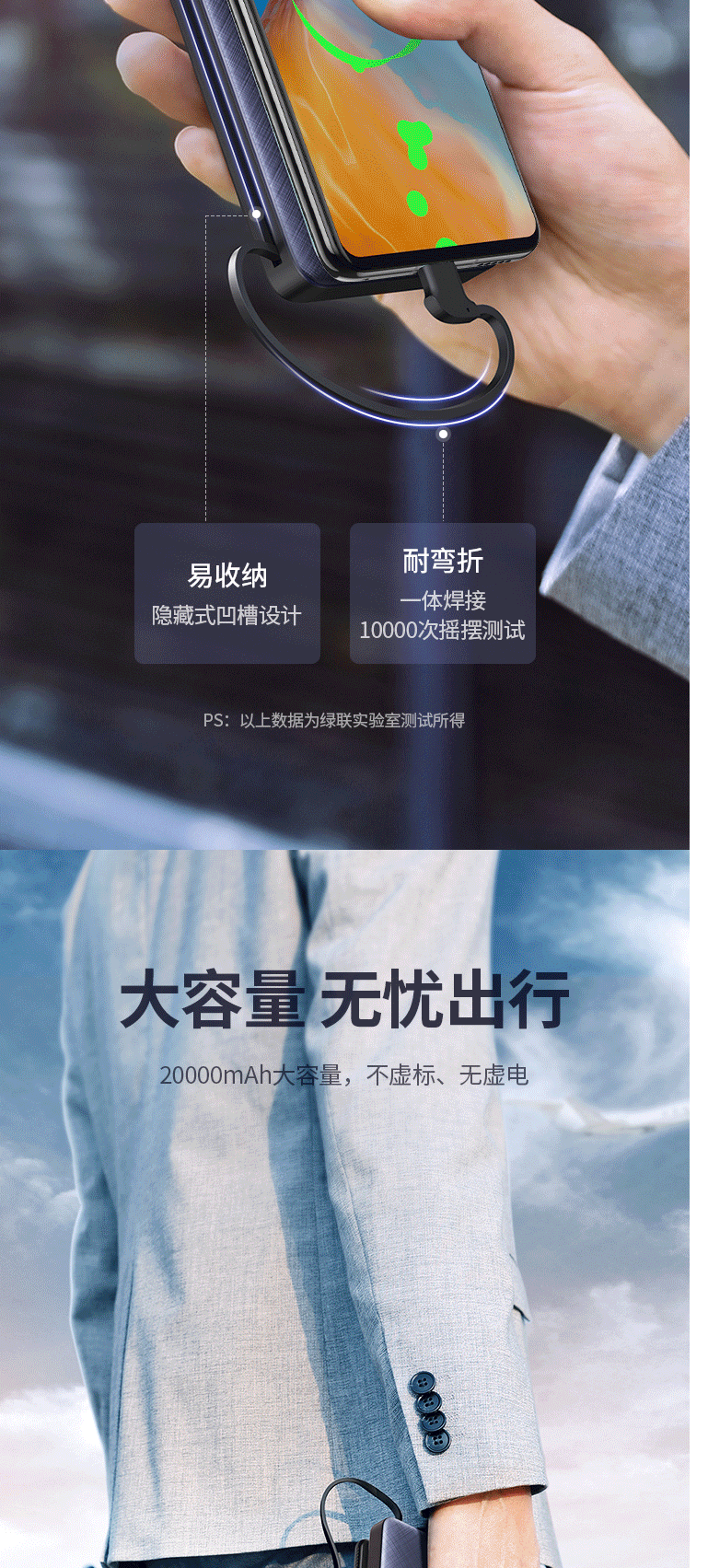 商品名称:绿联 充电宝自带Type-C线22.5W超级快充PD20W移动电源20000毫安时 20550