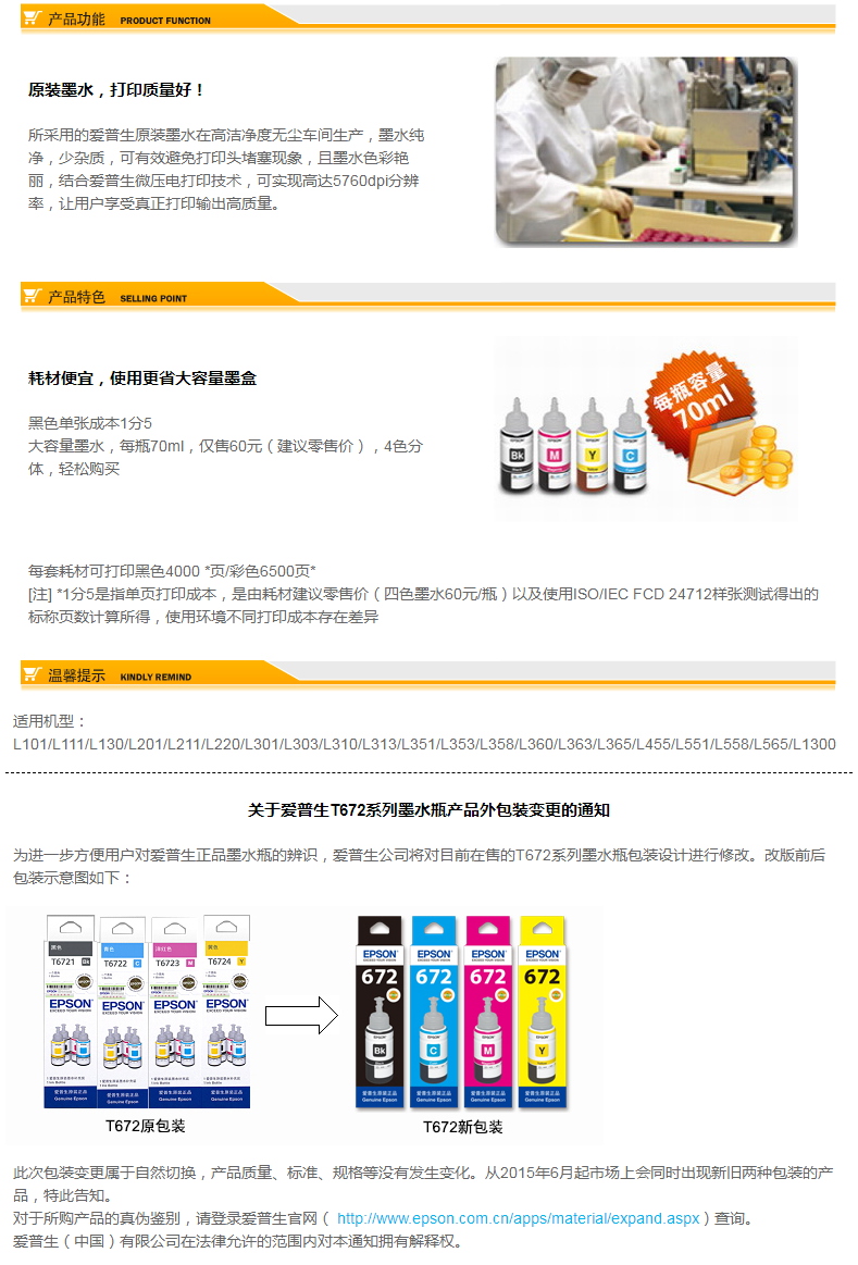 商品名称:爱普生T6724黄色原装墨水(适用L220/L310/L313/L211/L360/L380/L455L485/L565/L605/L655)