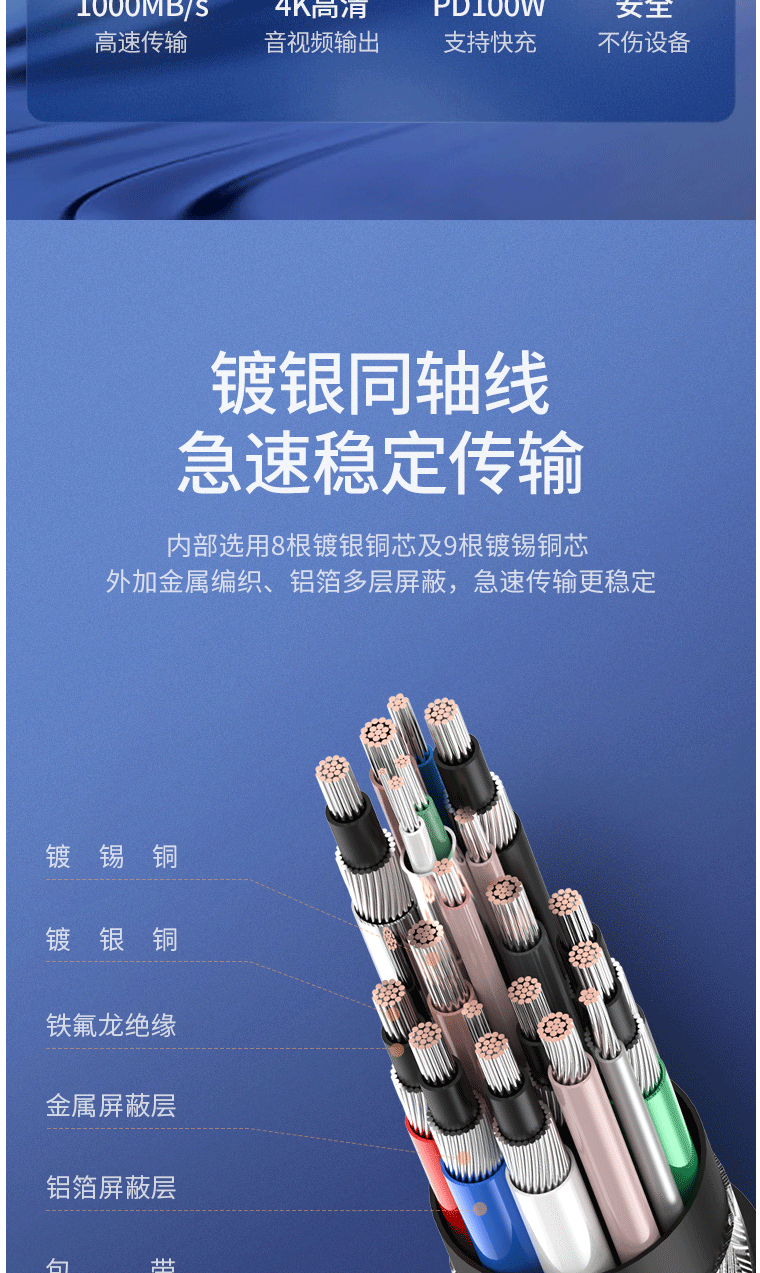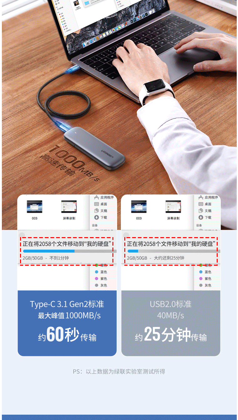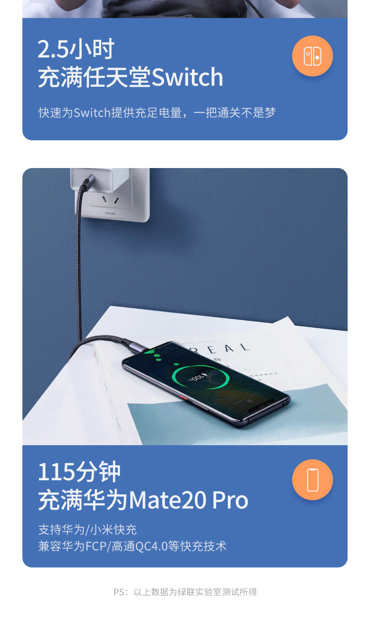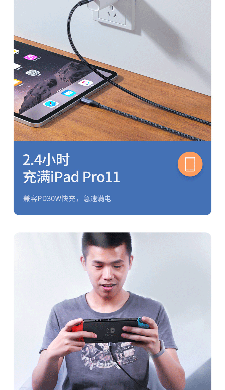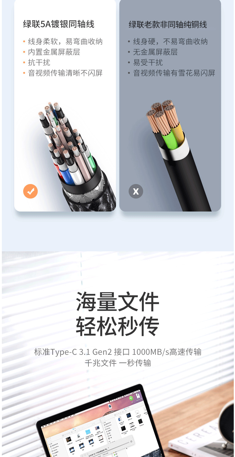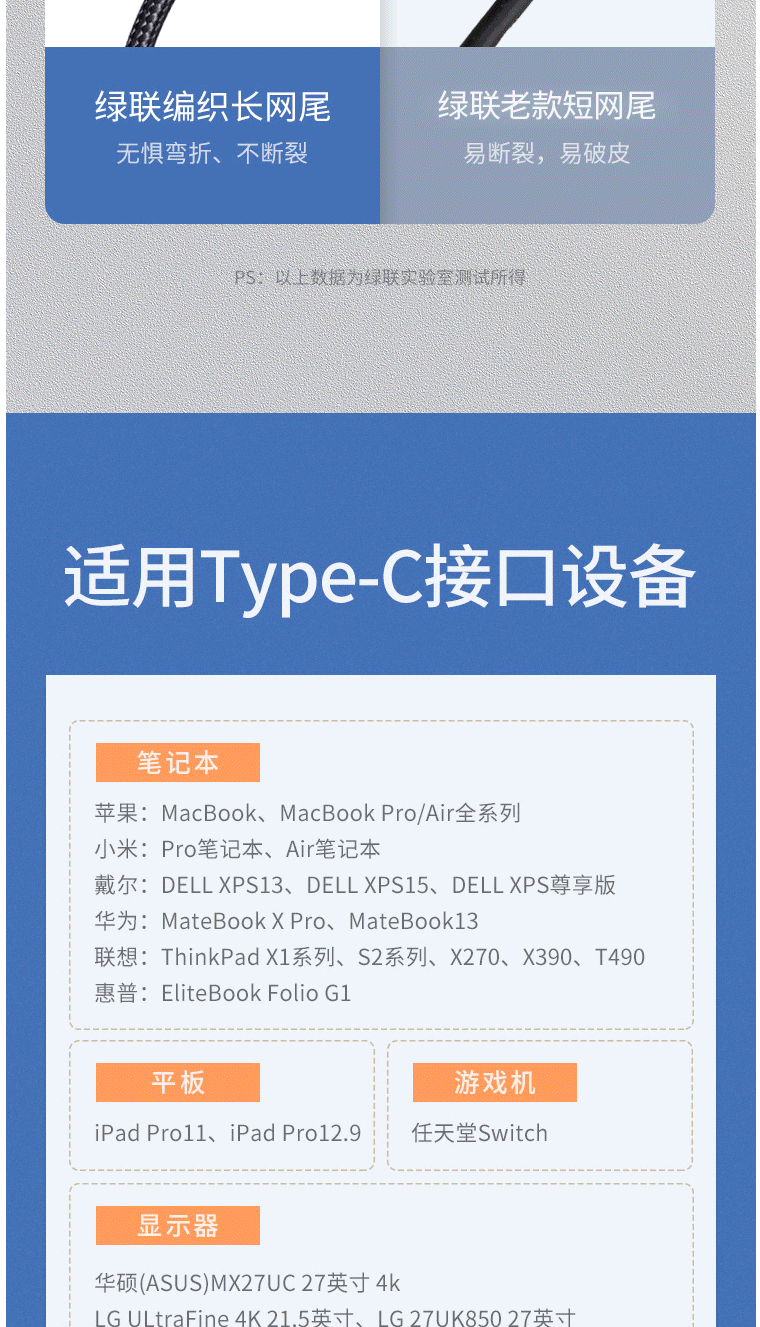 商品名称:绿联 双头Type-C全功能数据线5APD100w快充长线 1米 充电器通用 80150