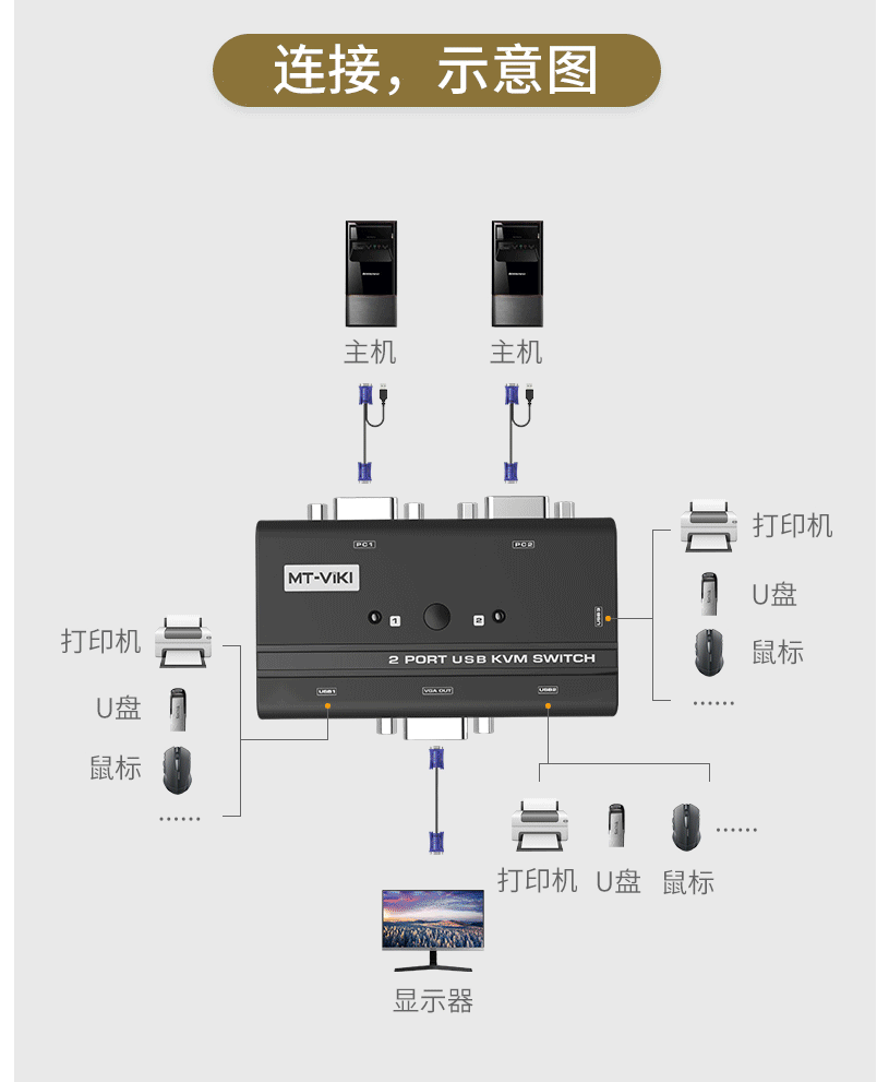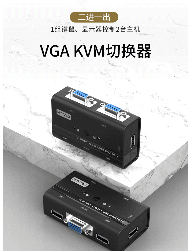 迈拓维矩 MT-260KL 2口kvm切换器2进1出vga电脑笔记本监控录像机共用usb键盘鼠标 切屏器