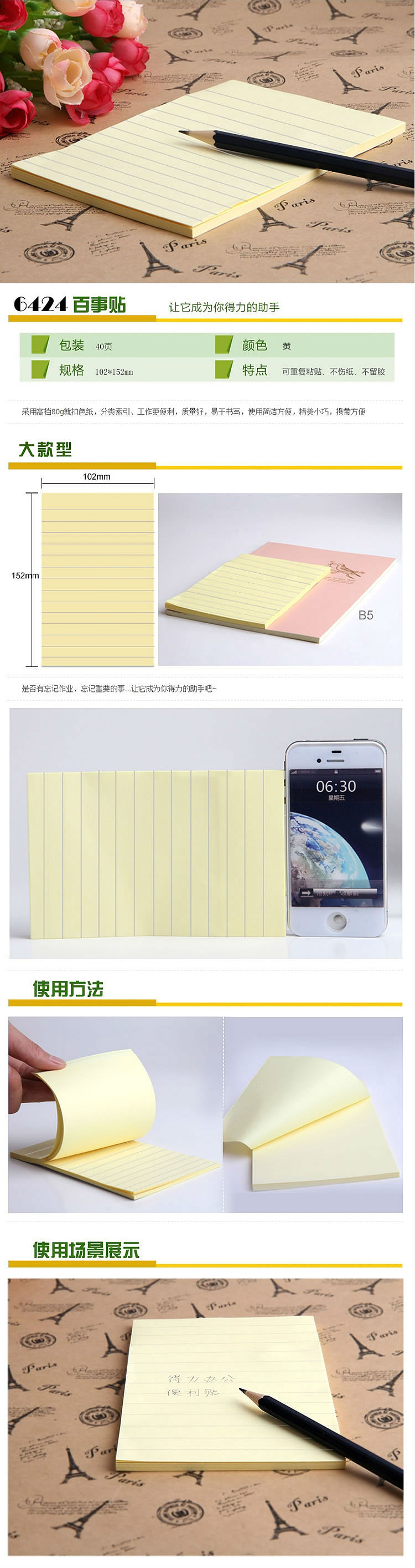 商品名称:得力横线百事贴 记事本 6424 单本装