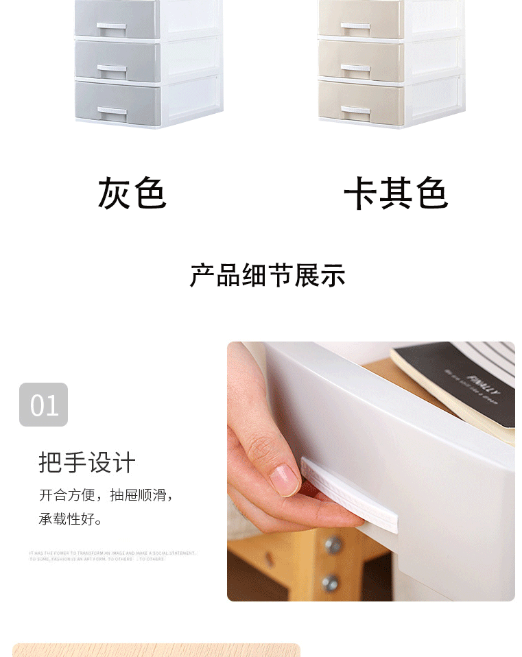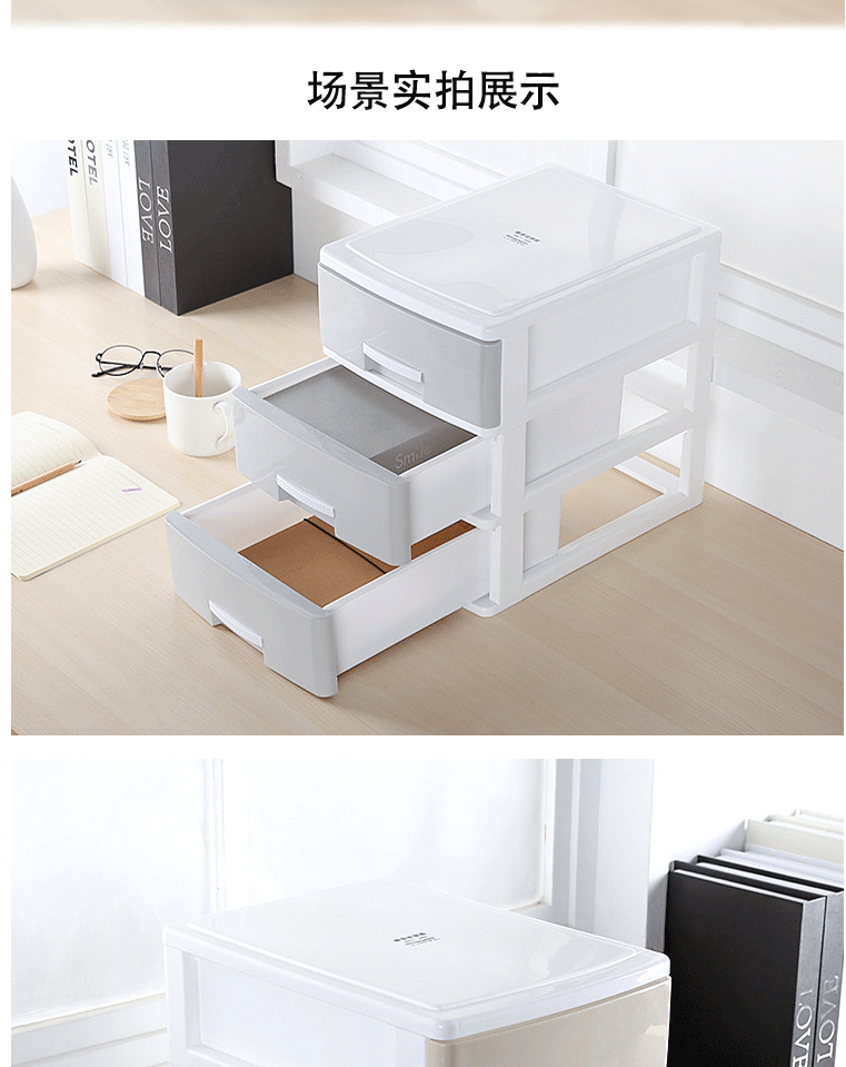 商品名称:桌面三层抽屉式收纳盒 办公收纳盒简约塑料小抽屉式多功能收纳柜 灰色-大号3层