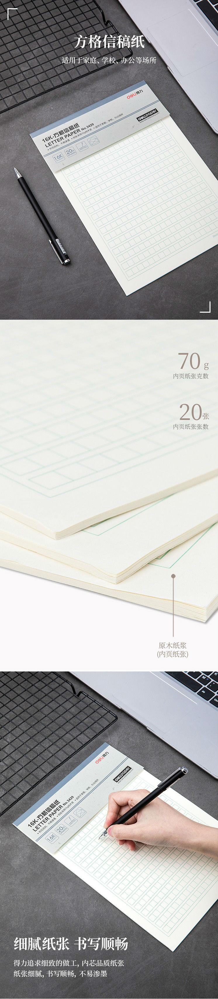 商品名称:得力(deli) 方格信纸16K作文本草稿纸 方格信稿纸 3429
