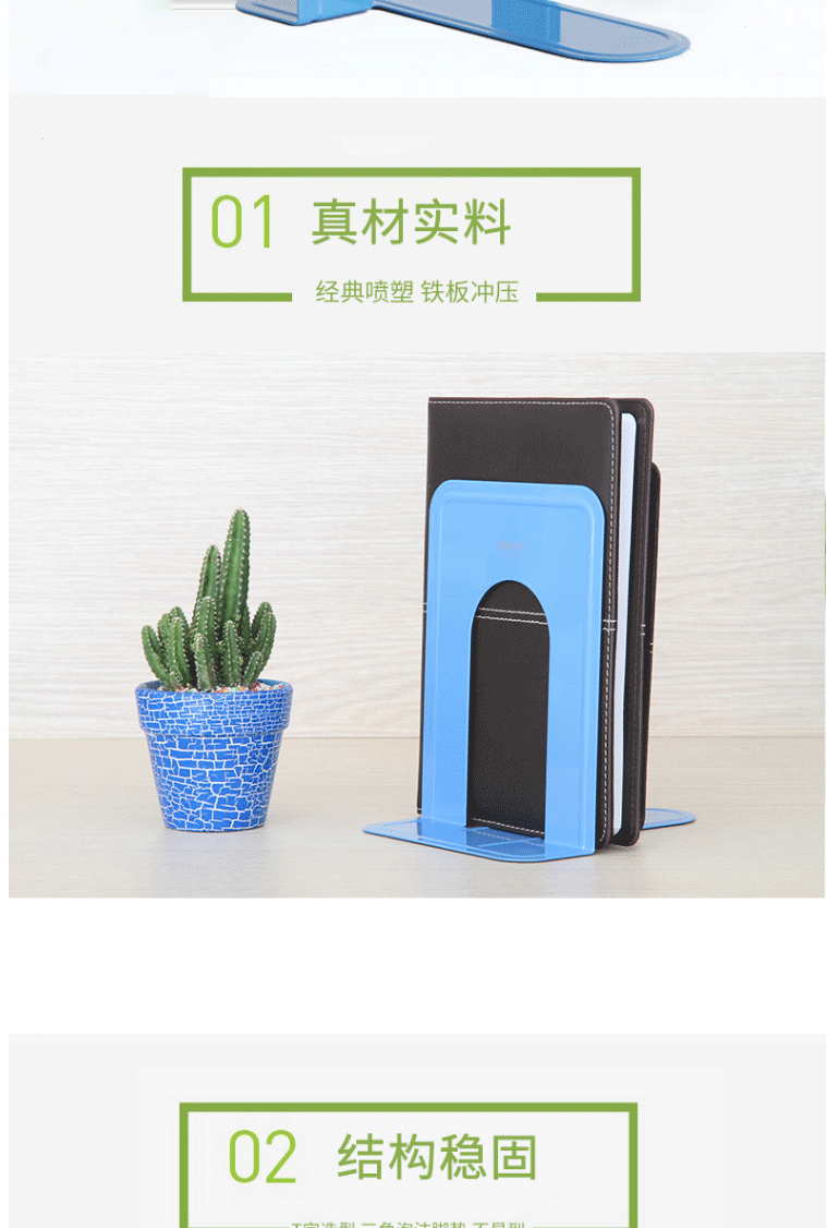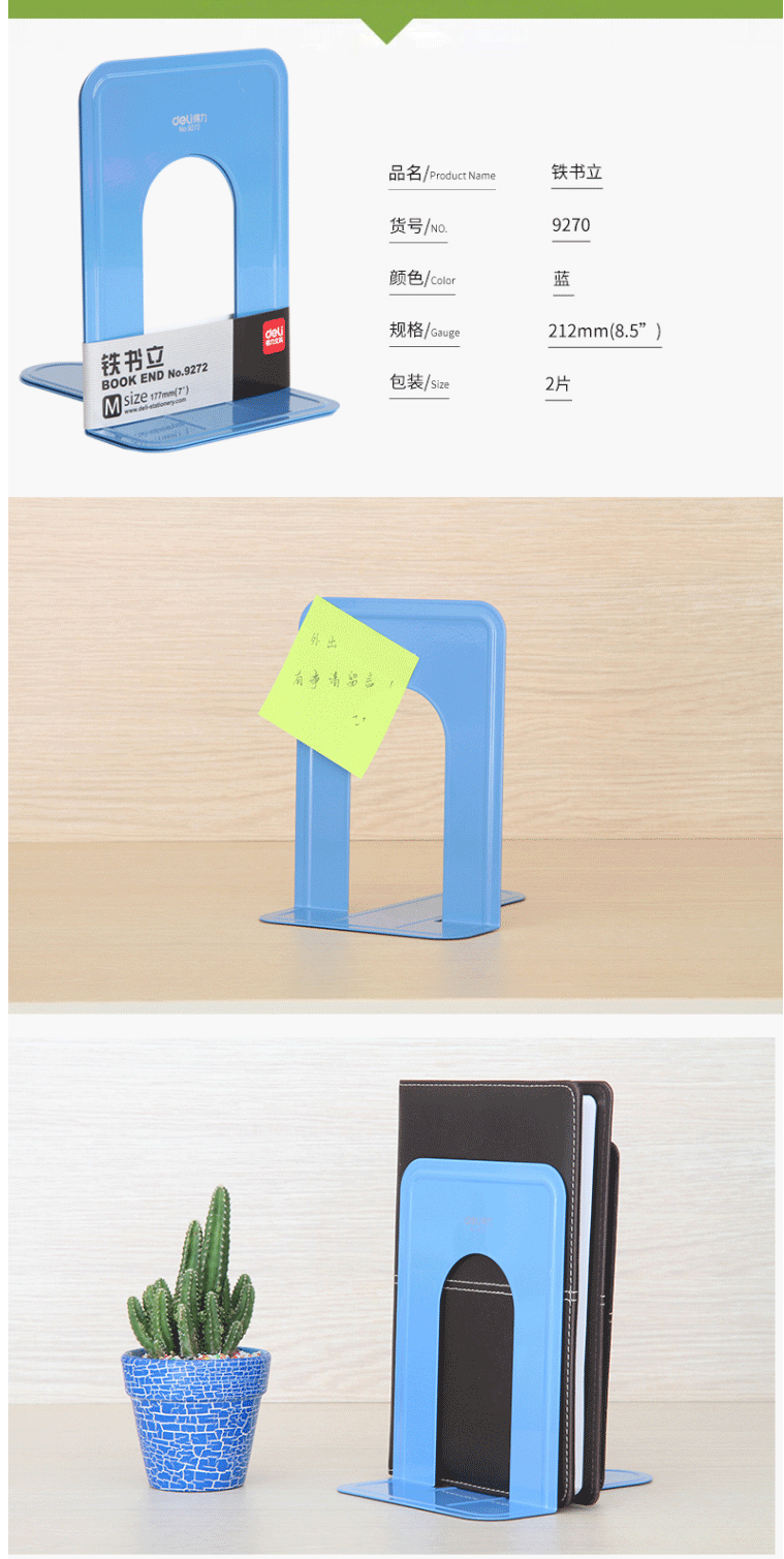 得力(deli)8.5英寸金属铁书立架 (高21cm) 2片/付 9270蓝色