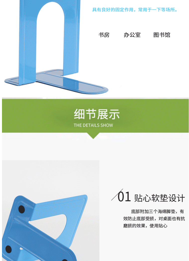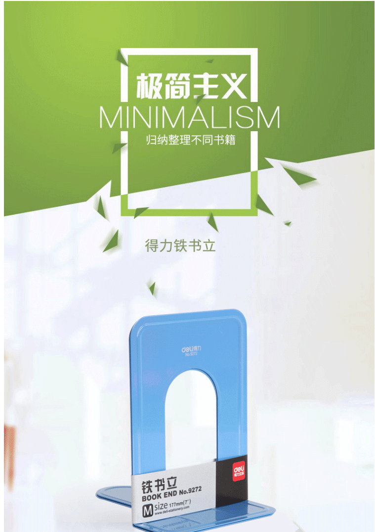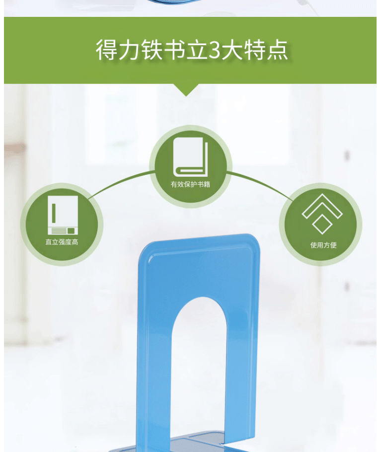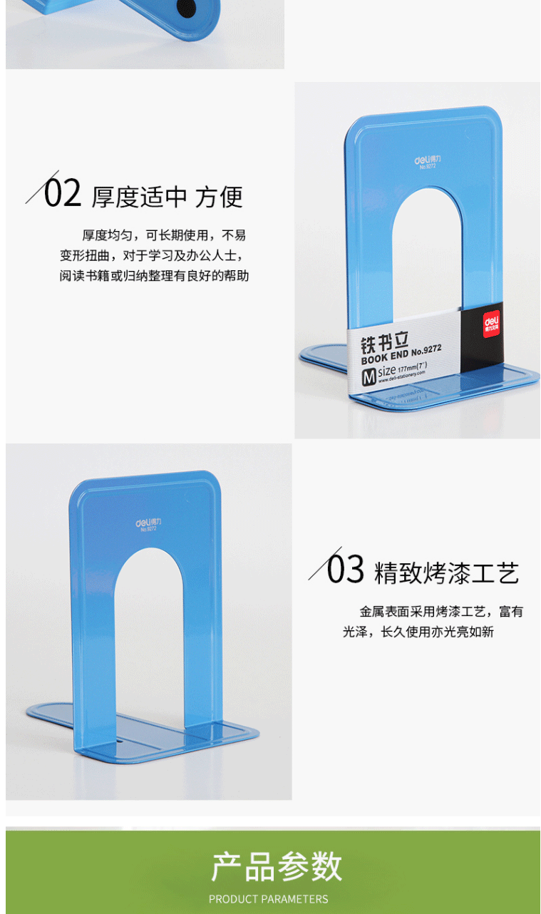 商品名称:得力(deli)8.5英寸金属铁书立架 (高21cm) 2片/付 9270蓝色