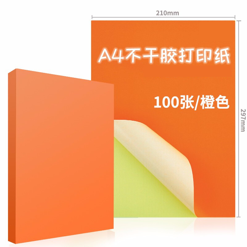 商品名称:彩色不干胶打印纸 A4 橙色 100张/包