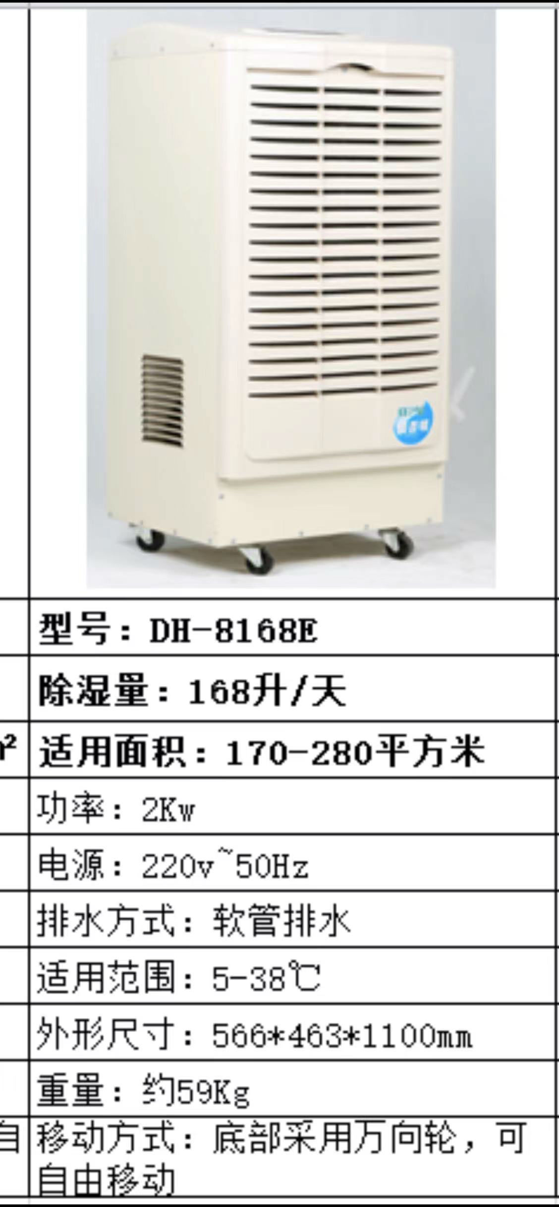 商品名称:澳普瑞除湿机 DH-8168E(接水管)