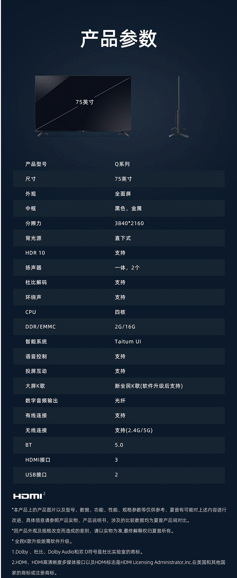 商品名称:电视 夏普(SHARP)4T-M75Q5CA 75英寸智能网络电视 全面屏 4K超高清