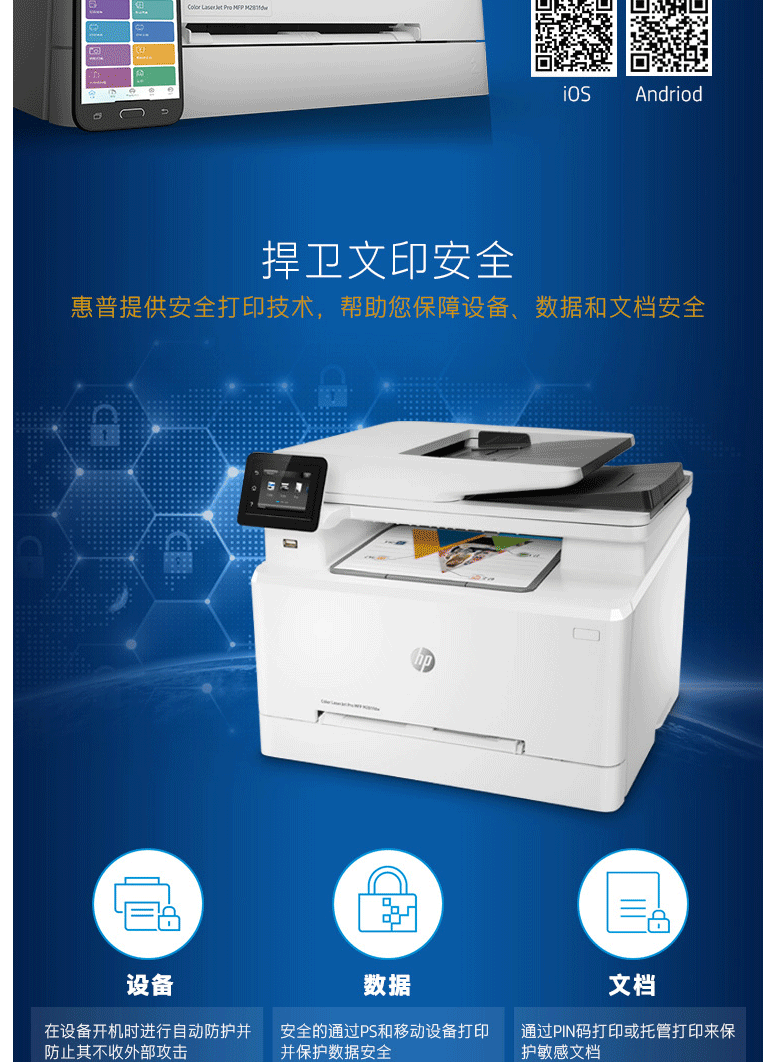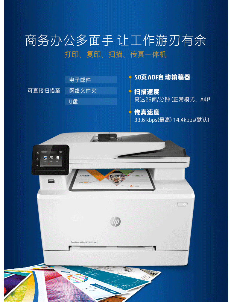惠普(HP)Colour LaserJet Pro M281fdw彩色激光多功能一体机(打印 复印 扫描 传真)