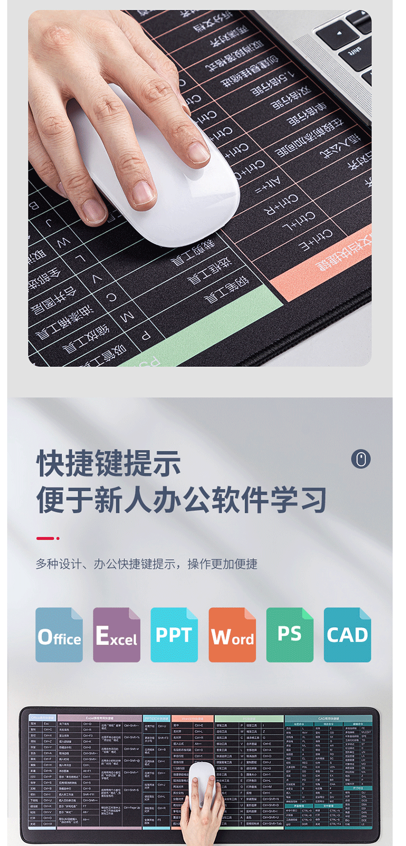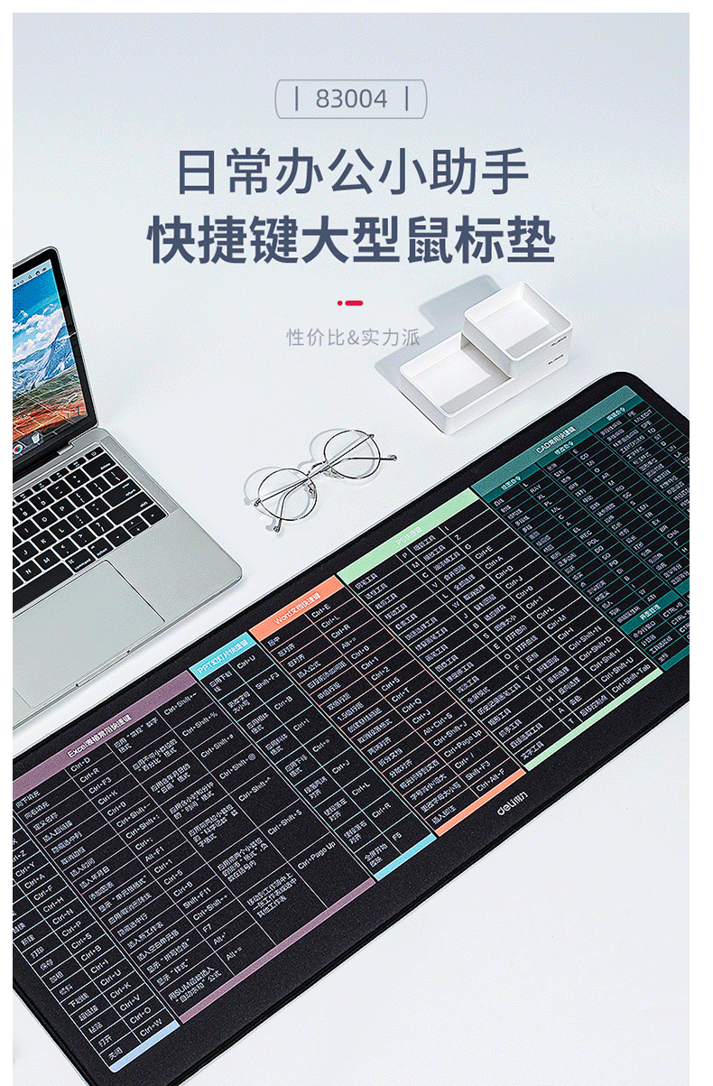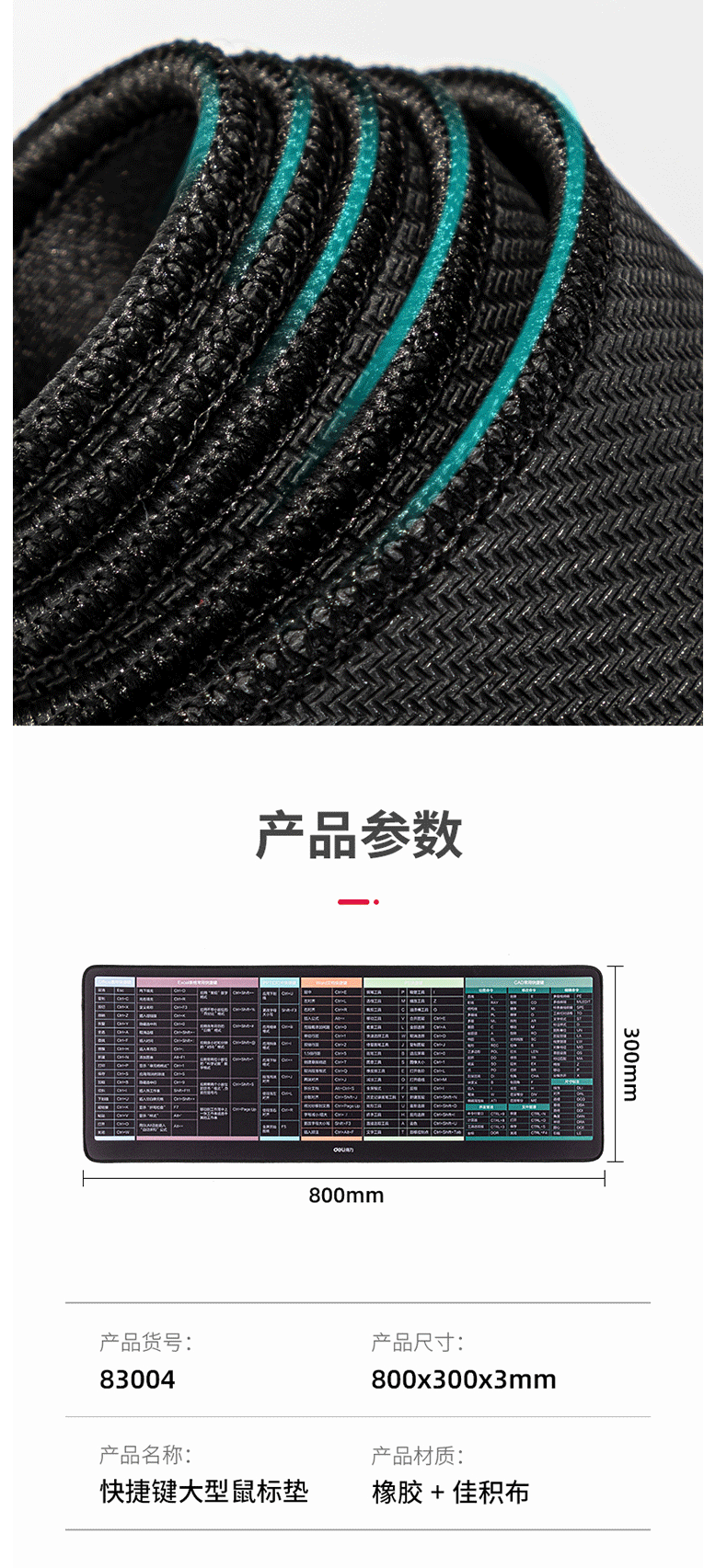 商品名称:得力(deli) 快捷键鼠标垫 800*300*3mm 快捷键大全大号鼠标垫 83004