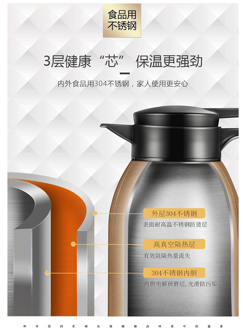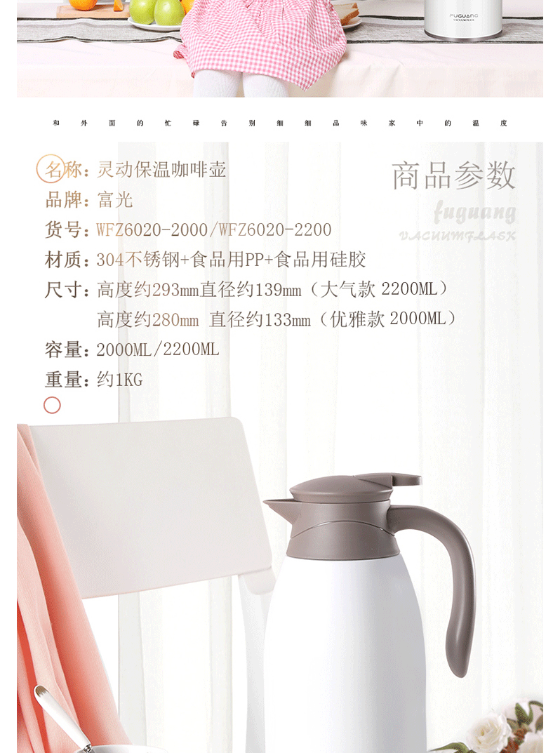 商品名称:富光 保温壶 保温瓶 大容量保温杯具 304不锈钢真空水壶 2L 赤黑色 (WFZ6020-2000)