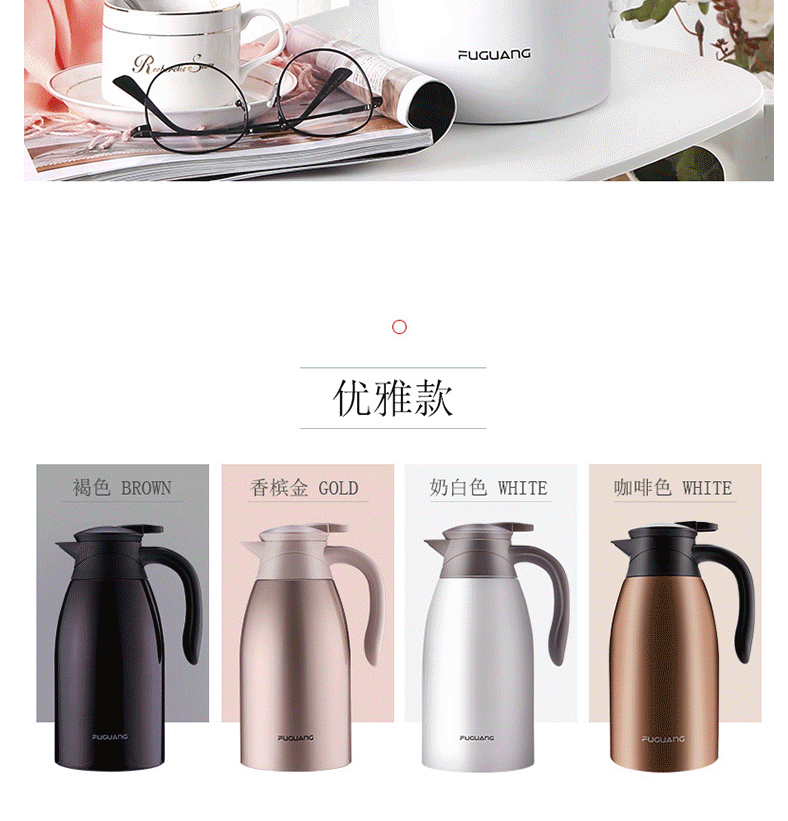富光 保温壶 保温瓶 大容量保温杯具 304不锈钢真空水壶 2L 赤黑色 (WFZ6020-2000)
