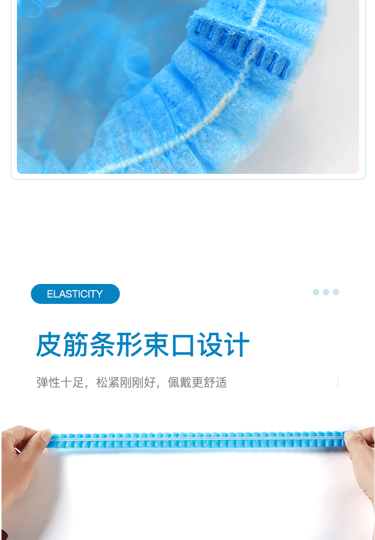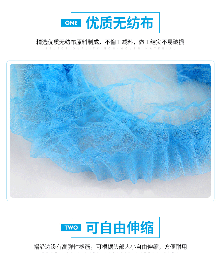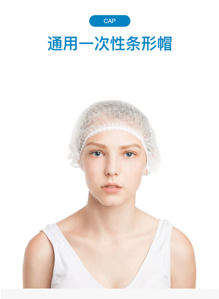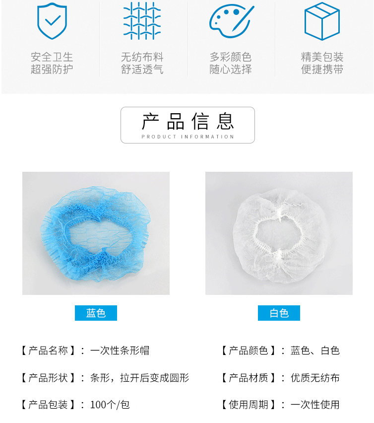 商品名称:一次性帽子 头套 无纺布厨房头套 条形帽 防尘防污帽头套 无纺布帽子白色100只/包
