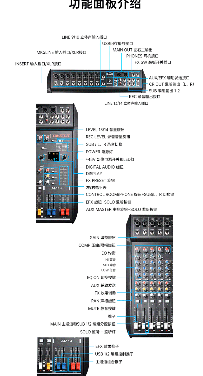 商品名称:得胜(TAKSTAR)AM10 十路调音台