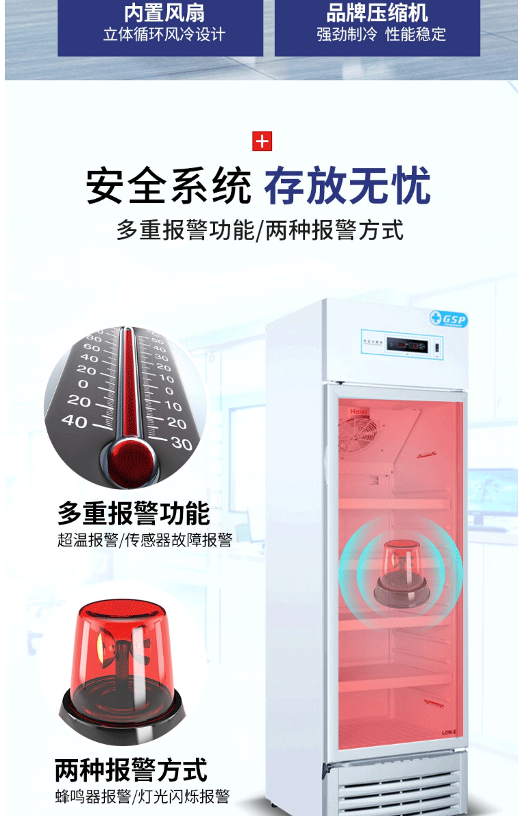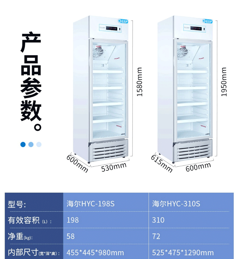 商品名称:海尔(Haier)198升立式单温风冷展示冰柜立式2-8℃药品阴凉冷藏箱医药数据存储单门保鲜冷柜HYC-198S