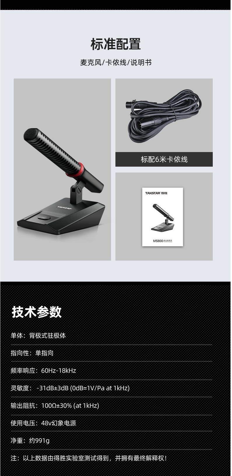 商品名称:得胜(TAKSTAR) Takstar得胜MS800会议麦克风系统工程讲台演讲学校会议室话筒