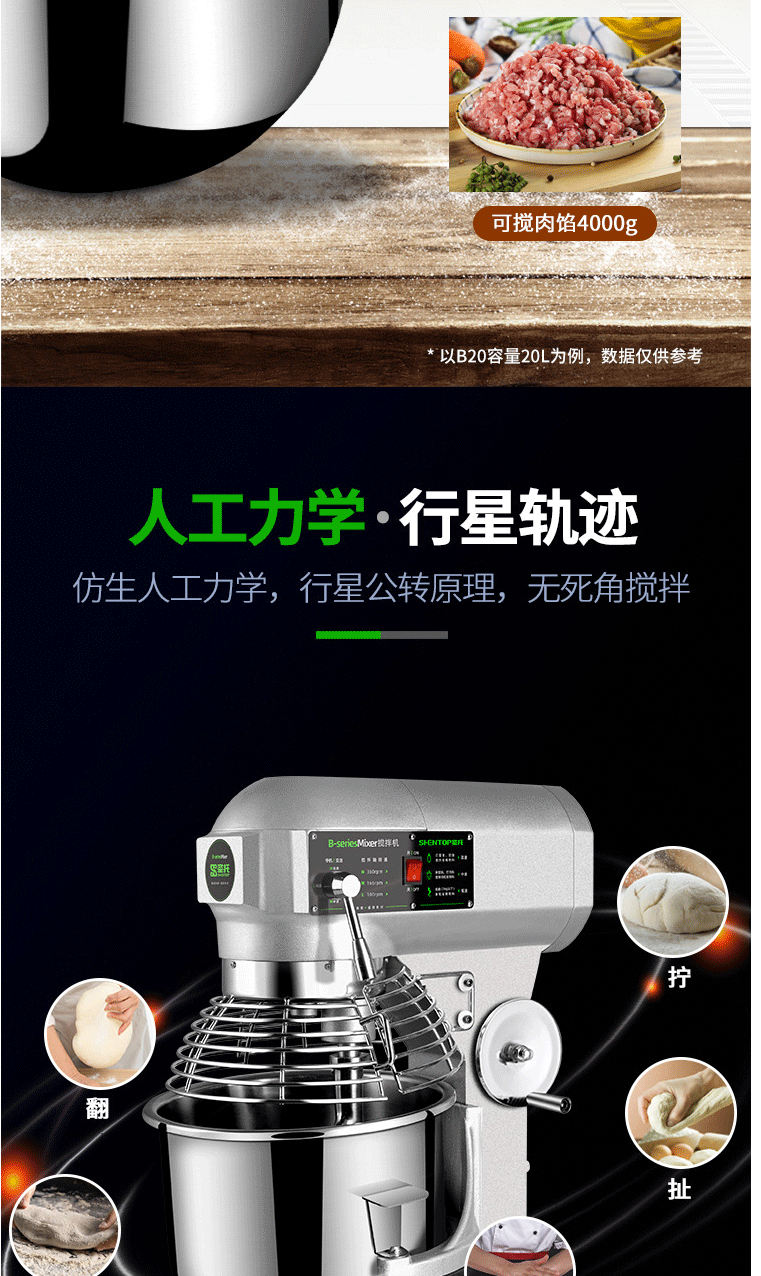 商品名称:圣托(Shentop)商用面粉揉面拌面搅拌机 全自动多功能厨师机 30L大型打蛋奶油打发机 STMS-B30